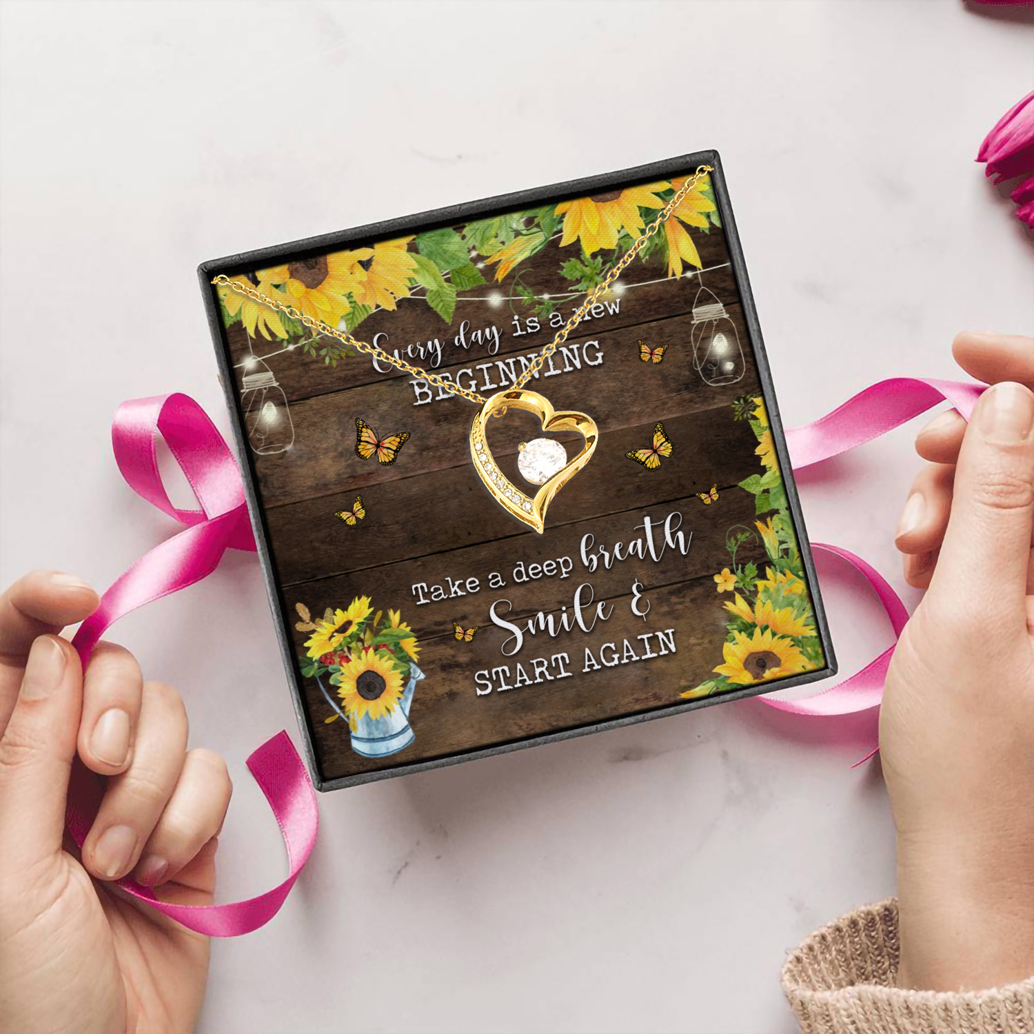 Let’s Shop Every Day Is A New Beginning Take A Deep Breath Smile And Start Again Forever Love Pendant Necklace!