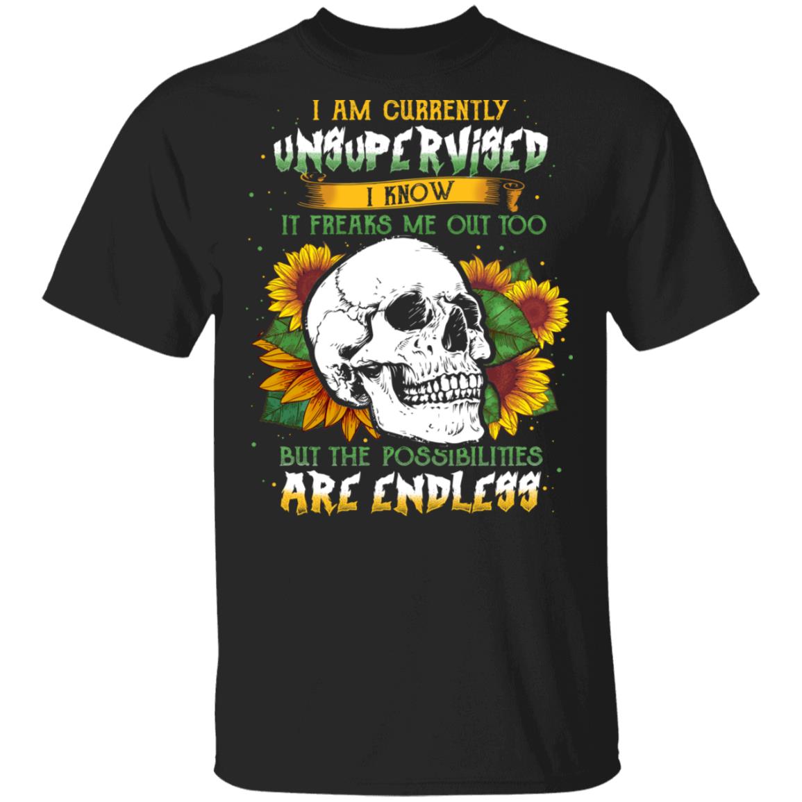 I Am Currently Unsupervised I Know It Freaks Me Out Too Sunflower Skull T-Shirt
