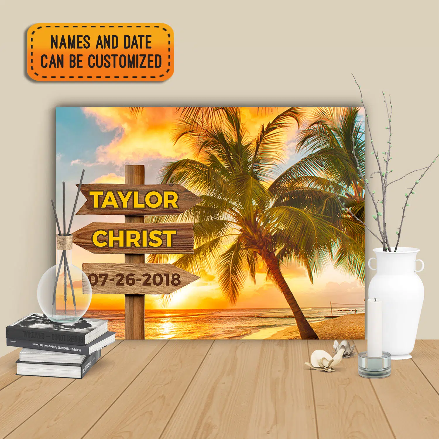 Let’s Shop Personalized Sunset Beach Couple’s Names And Special Date Wrapped Framed Canvas Prints – Unframed Poster!