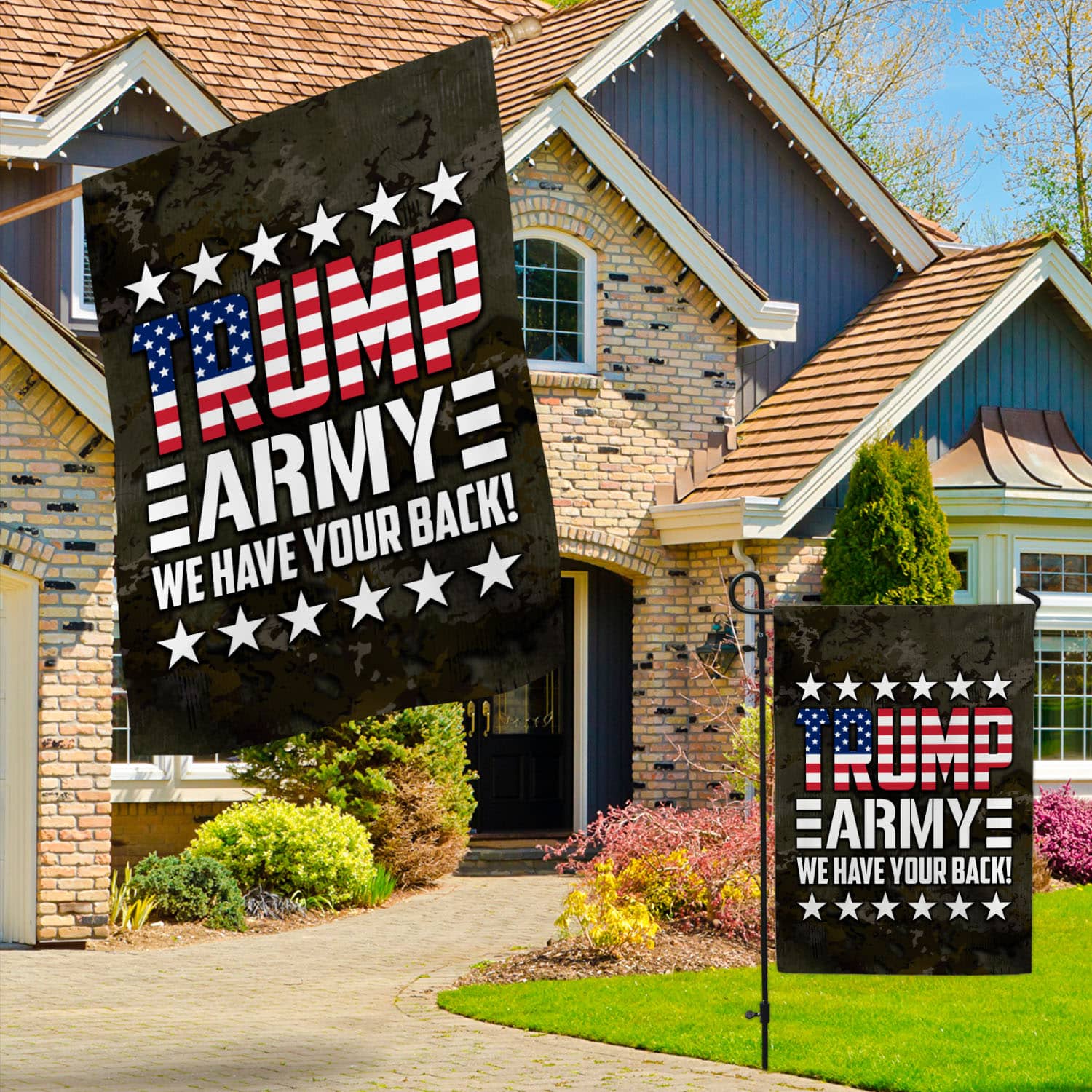 Let’s Shop Trump Army We Have Your Back American Outdoor Garden Flag – House Flag – Wall Flag!