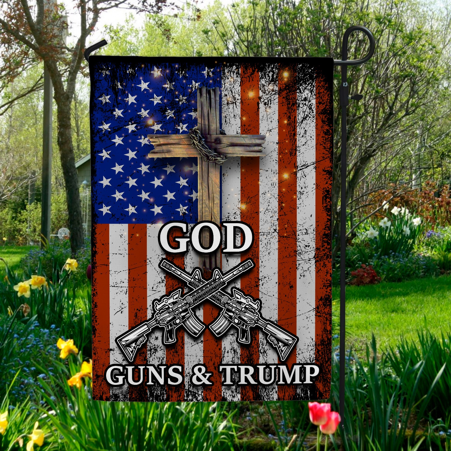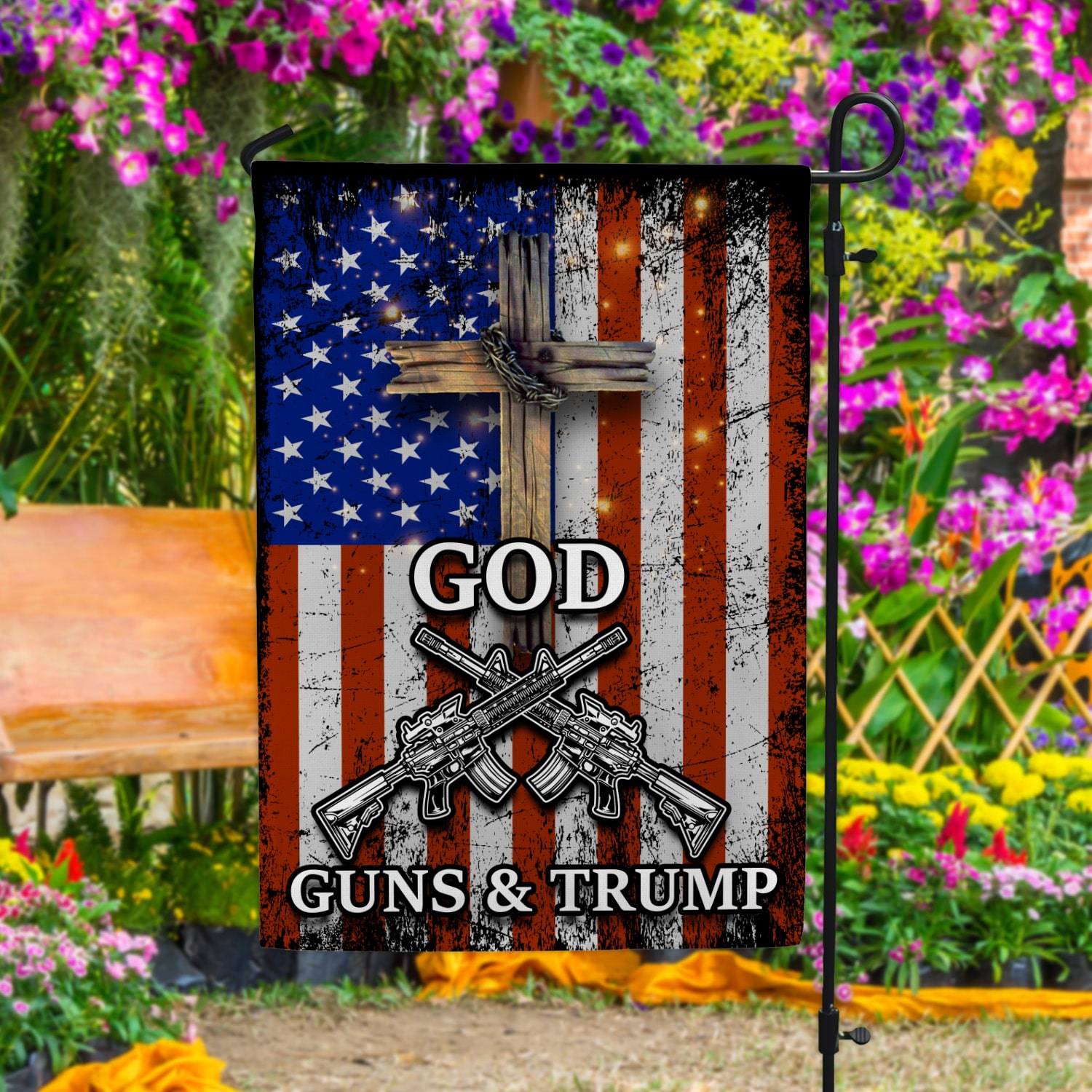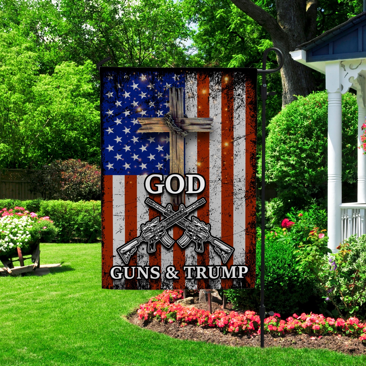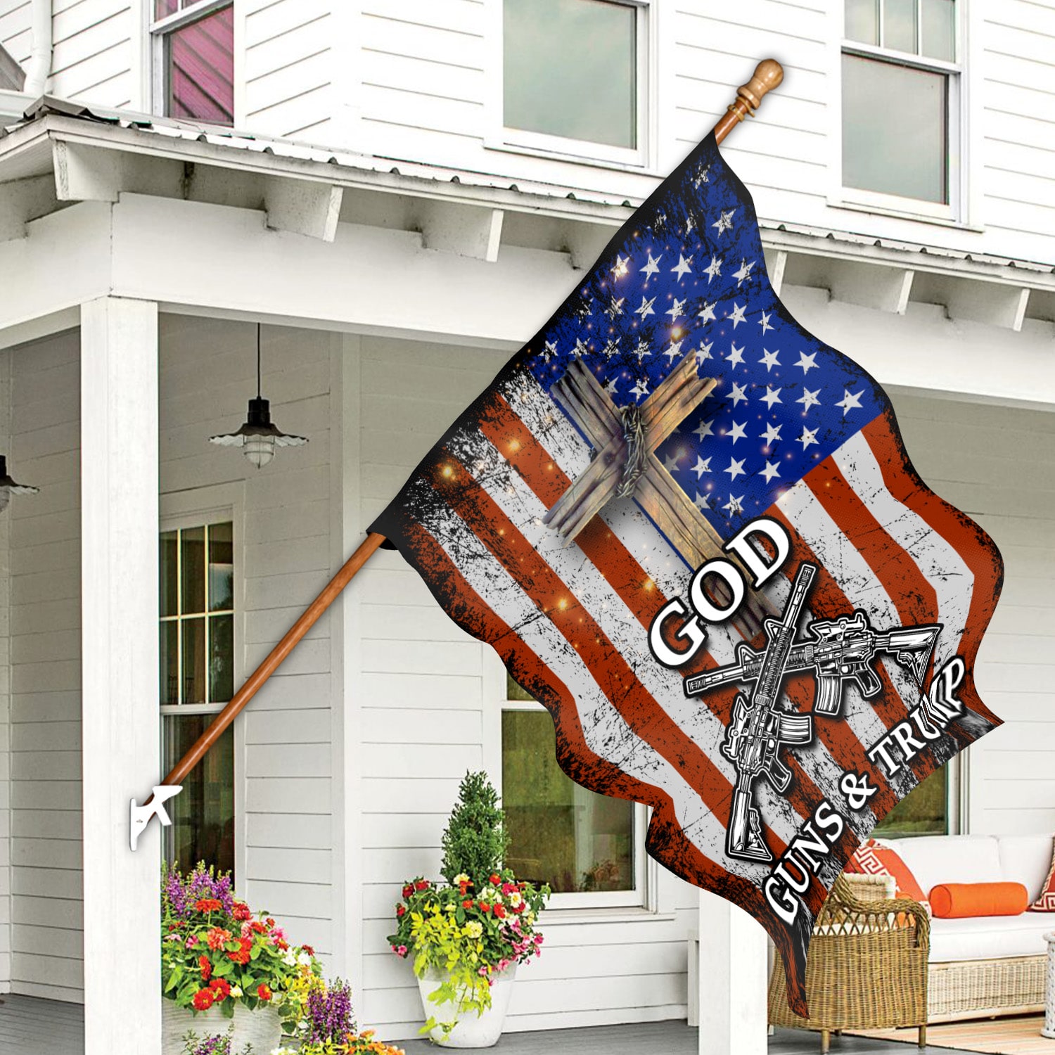 Let’s Shop God Guns Trump Decorative Garden Flag – House Flag – Trump American Flag!