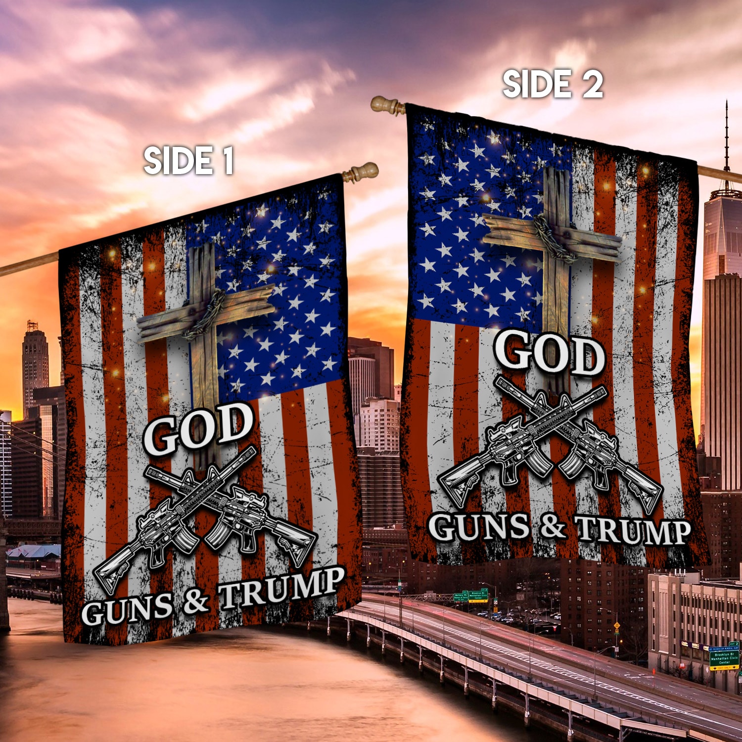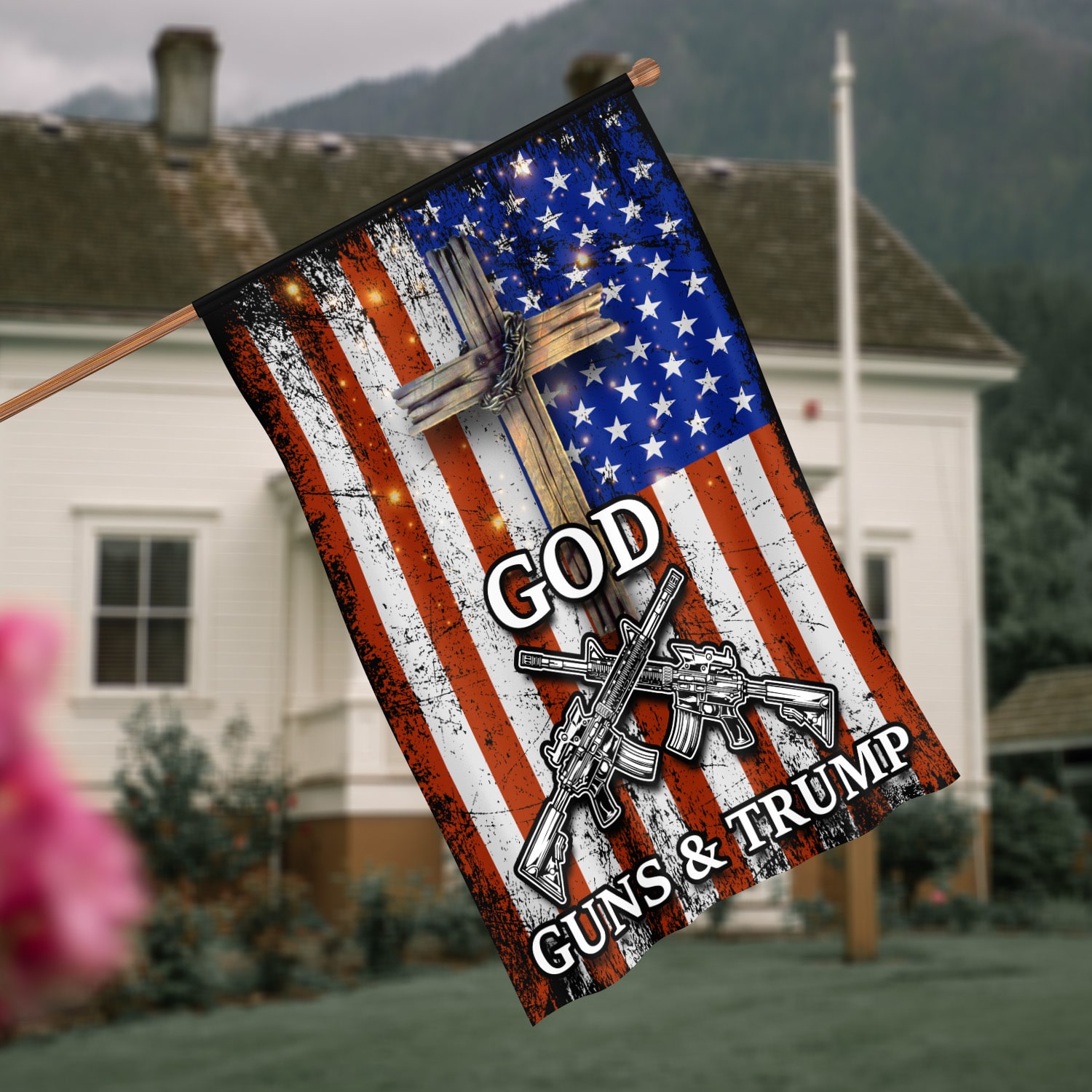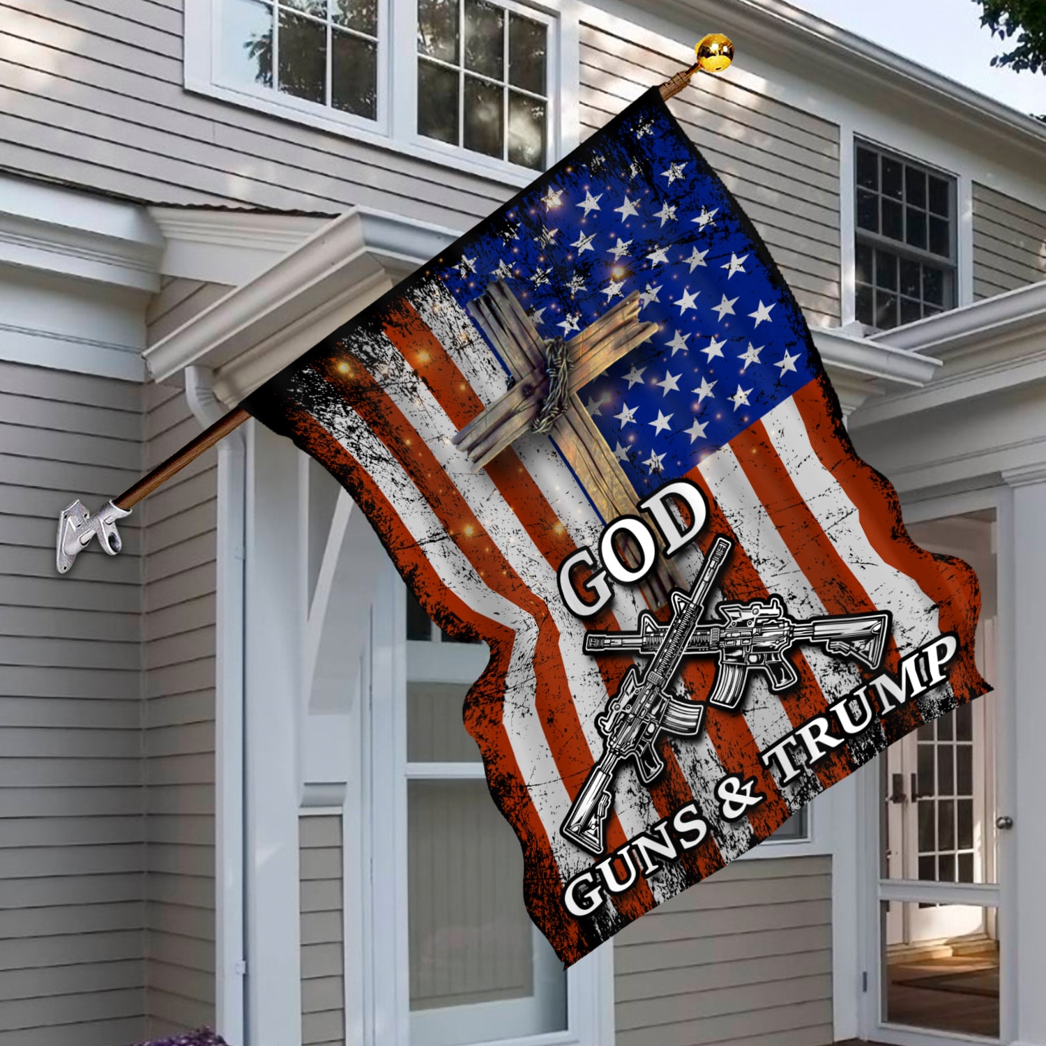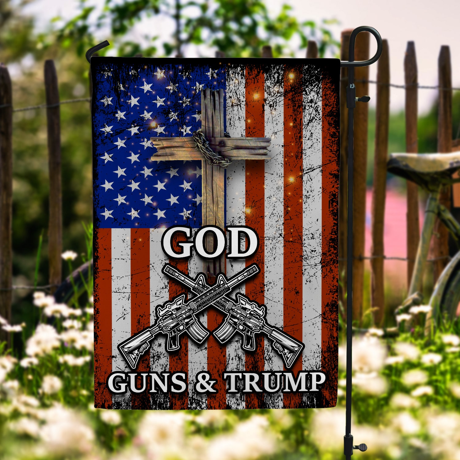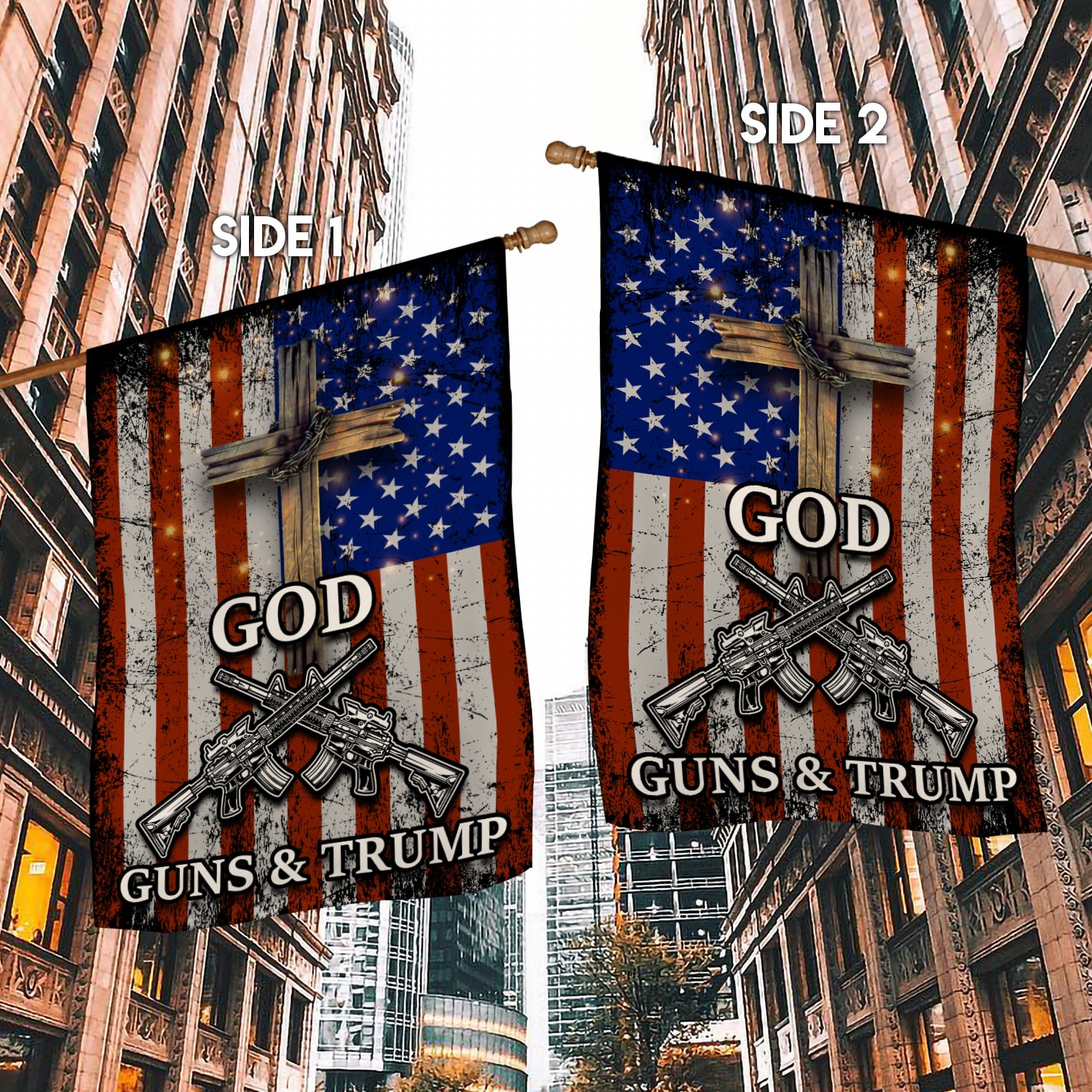 Let’s Shop God Guns Trump Decorative Garden Flag – House Flag – Trump American Flag!