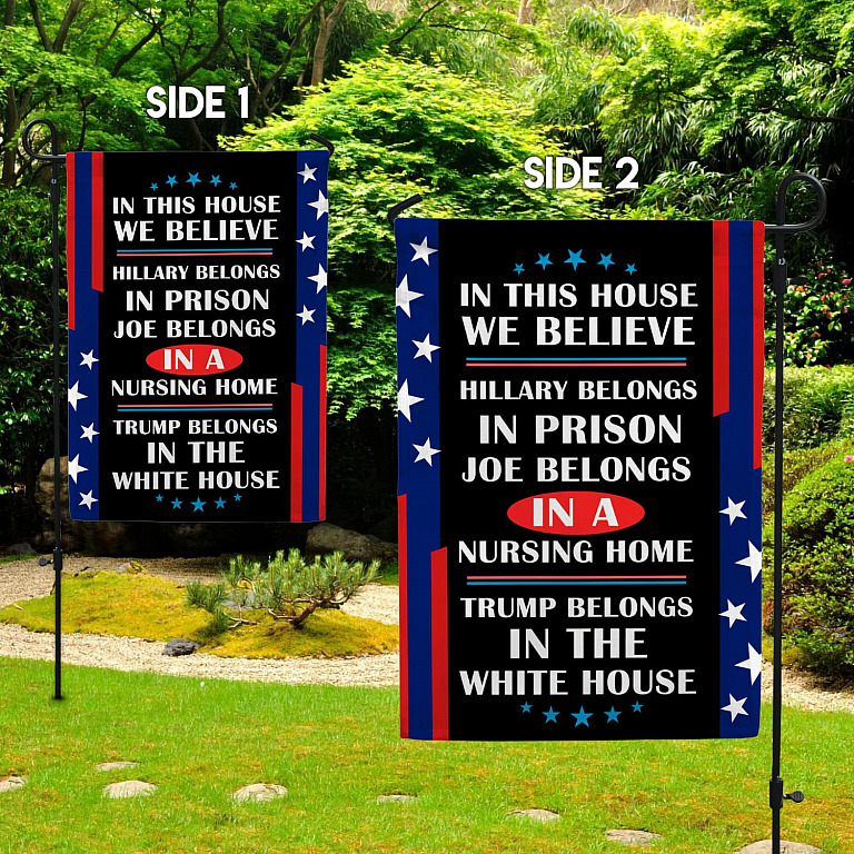 At CubeBik, besides custom flags, we also offer tees, hoodies, sweaters, raglans, tanks, wall arts, canvases, posters, mugs, blankets, engraved jewelry, personalized necklaces, printed face masks, throw pillows, tote bags, hats, accessories and more on our website, so do not miss our other Hillary Belongs in Prison Flag, Joe Belongs in A Nursing Home Flag, Trump Belongs in The White House Flag, Trump Belongs in The White House Flag, Trump Belongs in The White House Garden Flag related merchandise. Moreover, all the products are made-to-order and one of a kind custom designs you can’t get elsewhere in normal stores. Let’s discover CubeBik.com now and find your favorite personalized items. We can’t wait to surprise and build beautiful memories with you and your loved ones.