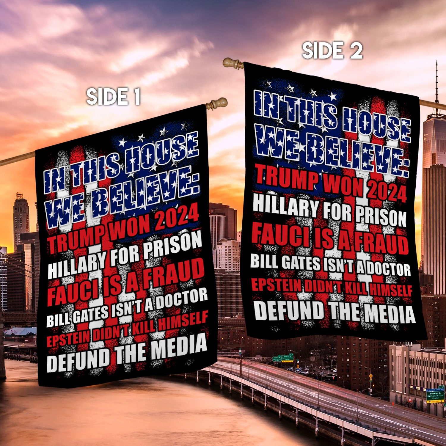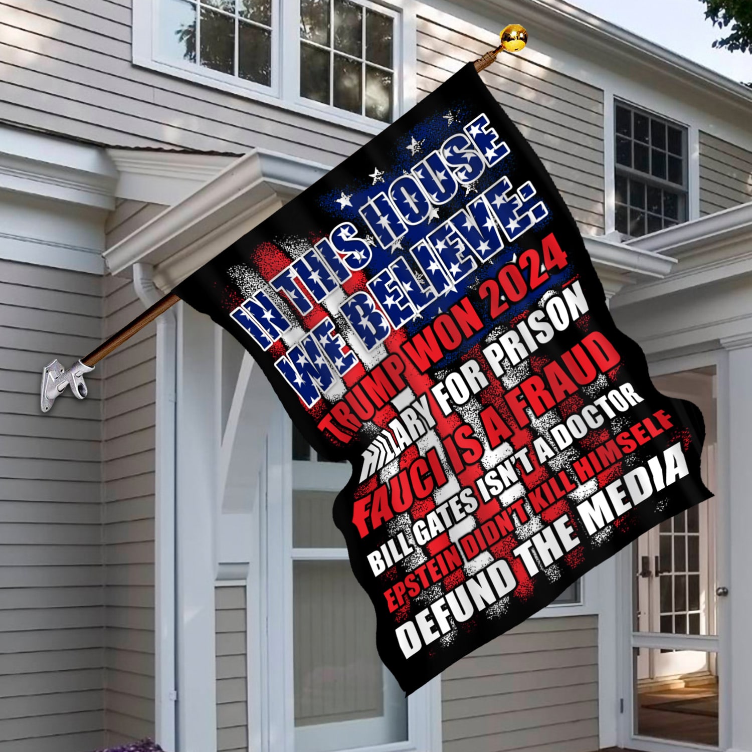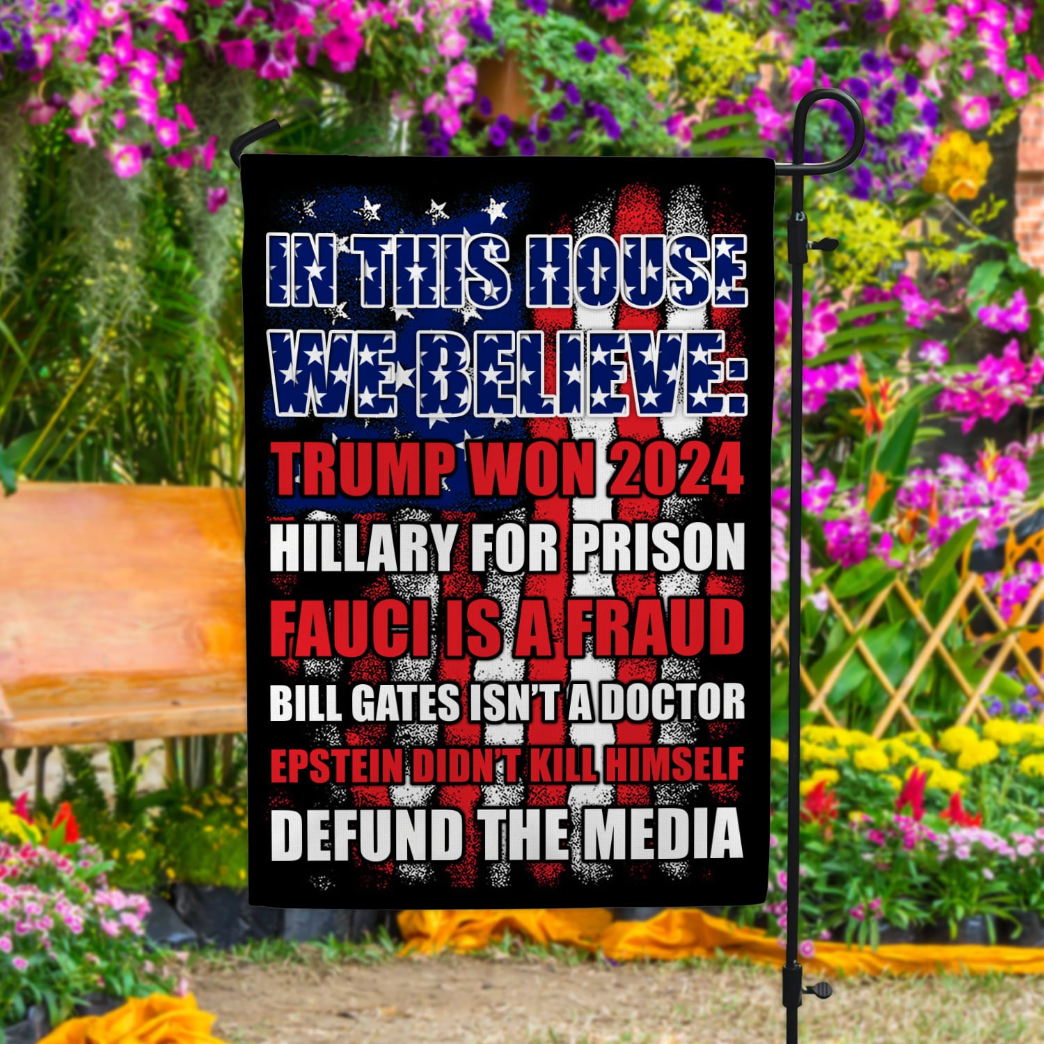 Let’s Shop In This House We Believe Trump Won 2024 Decorative Garden Flag – House Flag – Trump Won Flag!