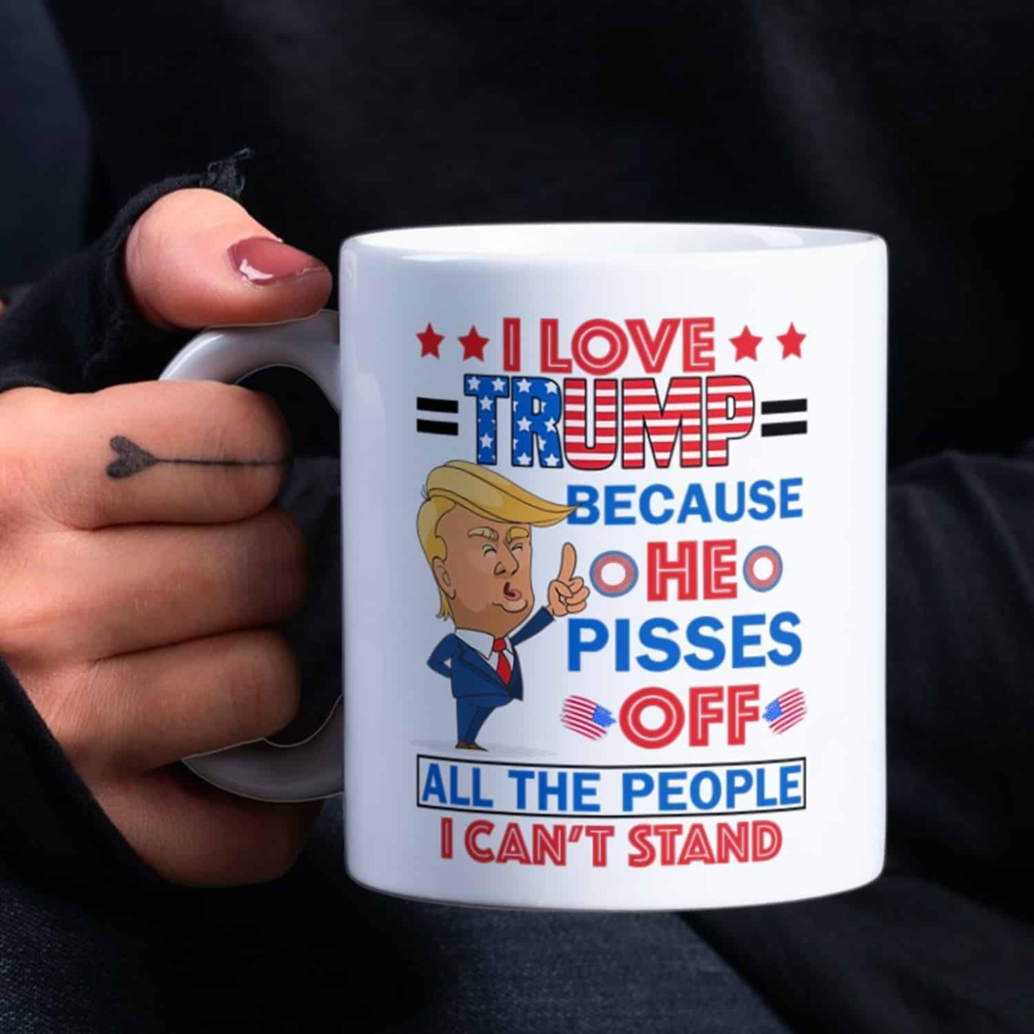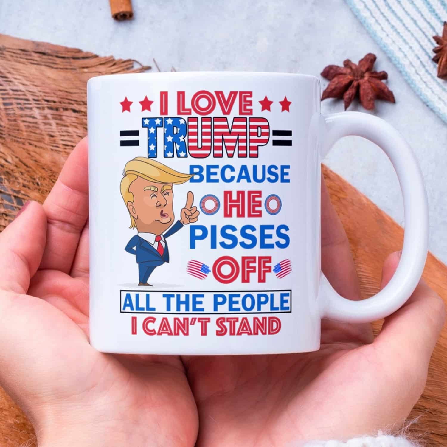 Let’s Shop I Love Trump Because He Pisses Off All the People Can’t Stand Trump Supporter Ceramic Coffee Mug – Beer Stein – Water Bottle!