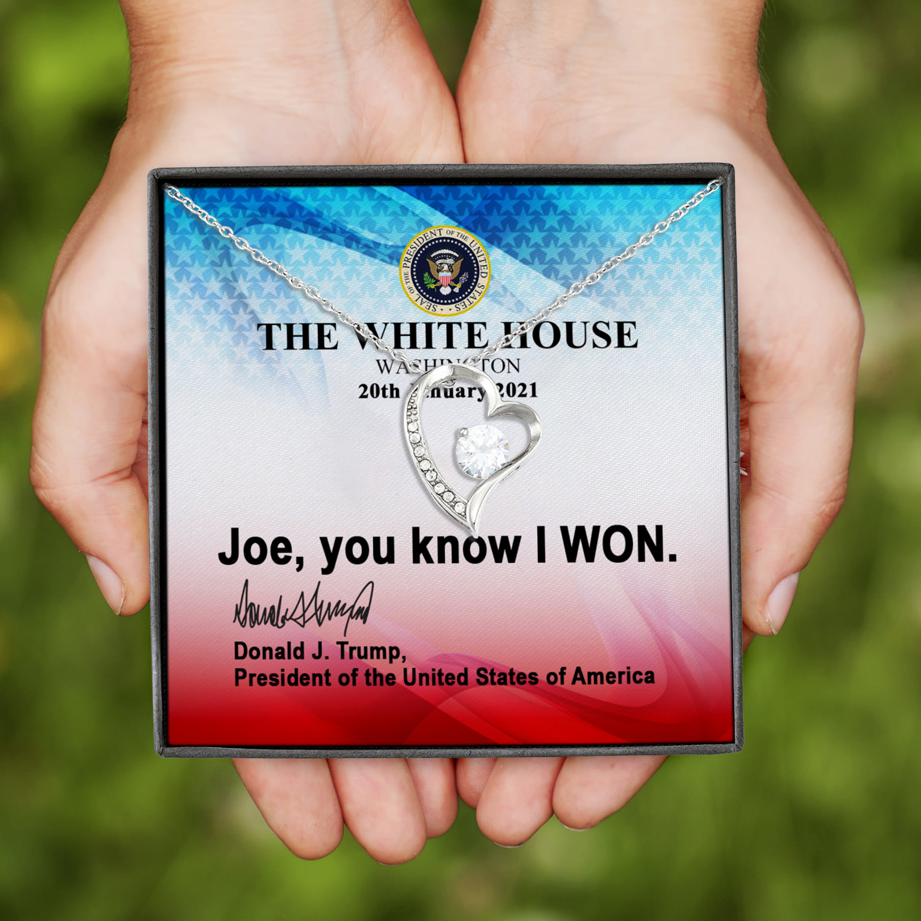 Let’s Shop Joe You Know I Won Trump Is My President Inauguration 20th January 2021 Forever Love Heart Pendant Necklace!