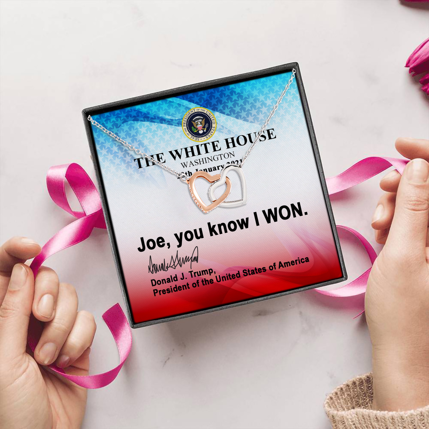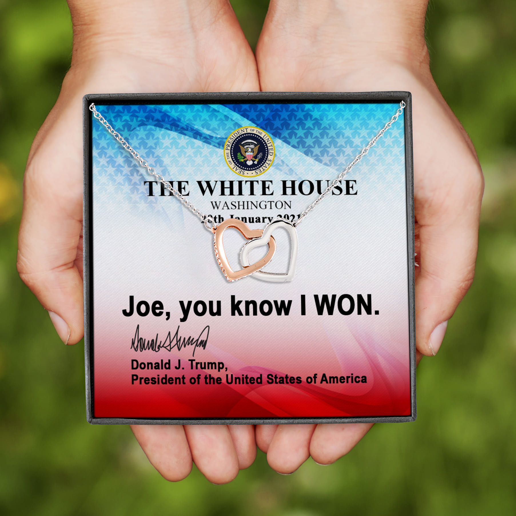 Let’s Shop Joe You Know I Won Trump Is My President Inauguration 20th January 2021 Interlocking Hearts Pendant Necklace!