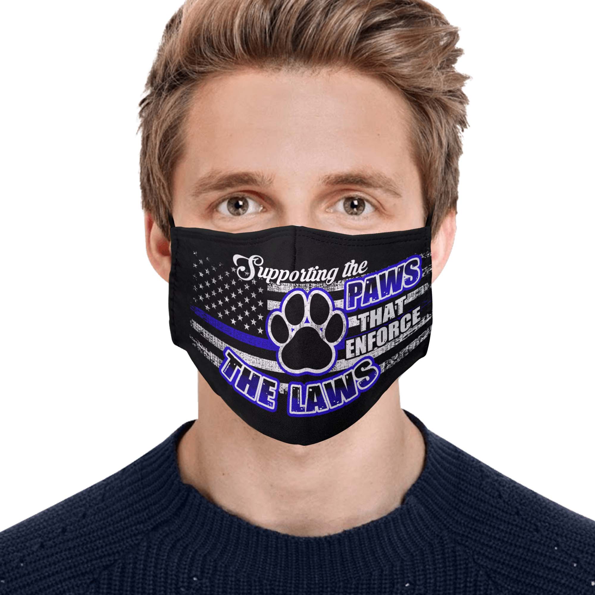 Supporting The Paws That Enforce The Laws Washable Reusable Custom Printed Cloth Face Mask Cover