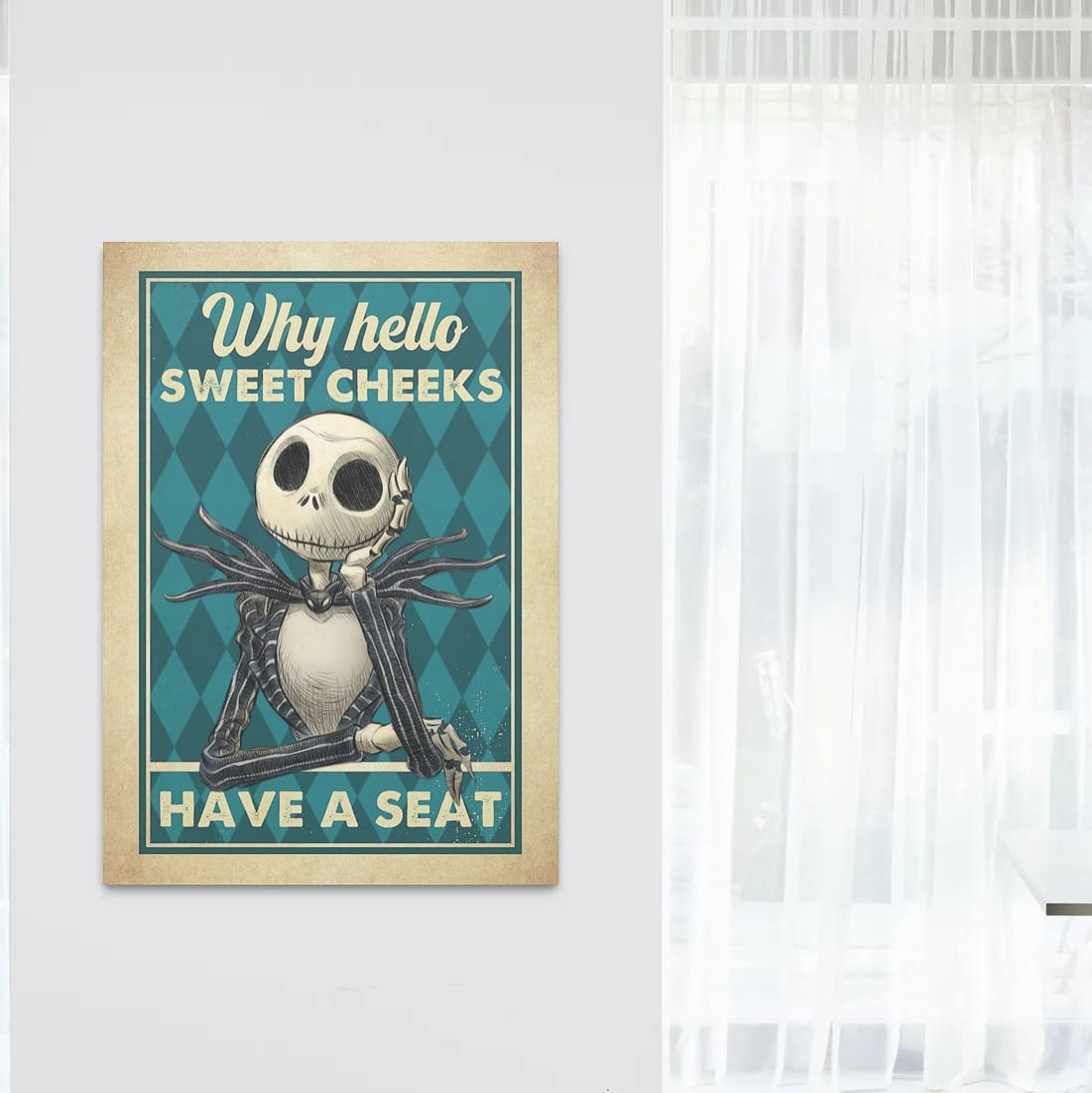 Let’s Shop Why Hello Sweet Cheeks Have a Seek Jack Skellington Funny Bathroom Framed Canvas Prints – Unframed Poster!
