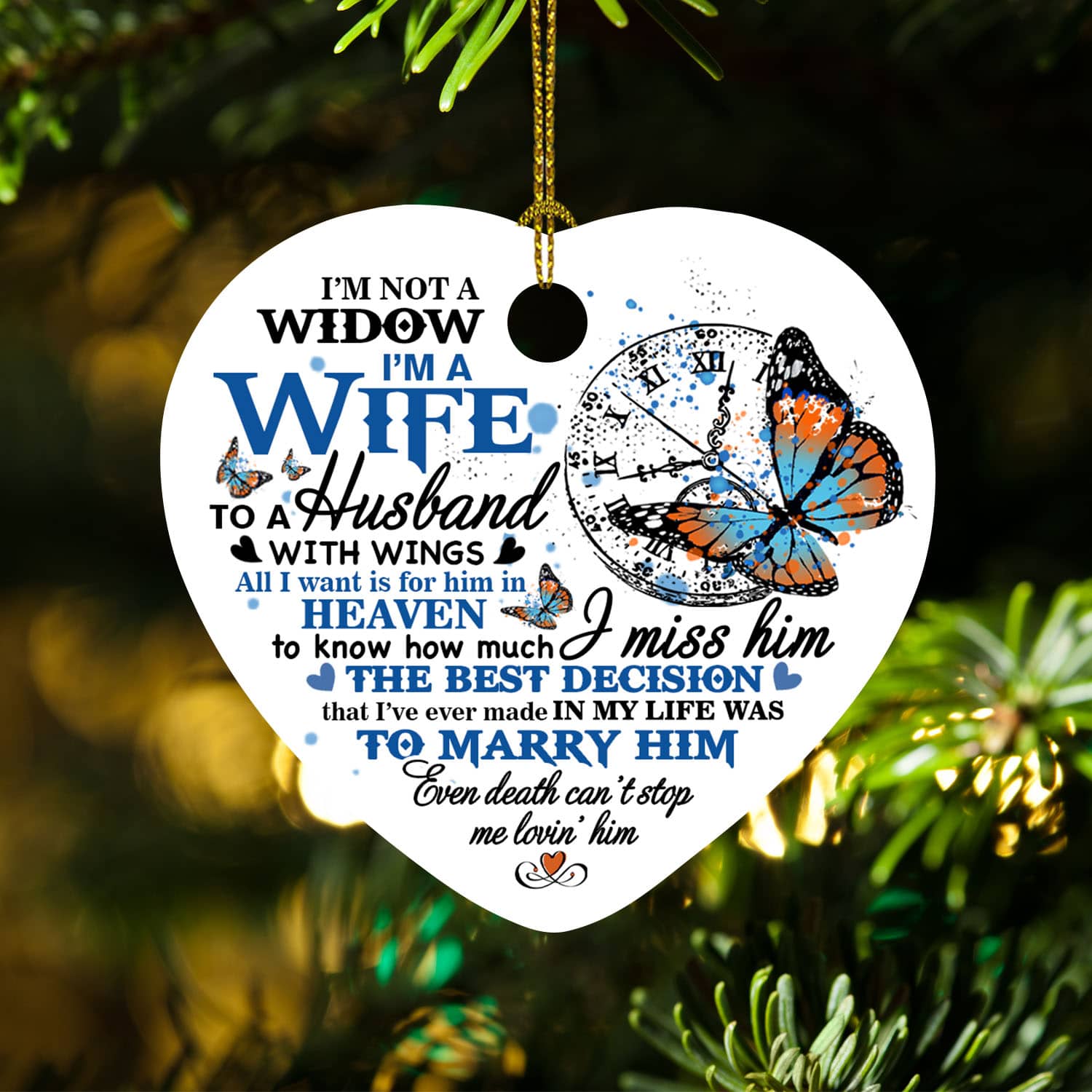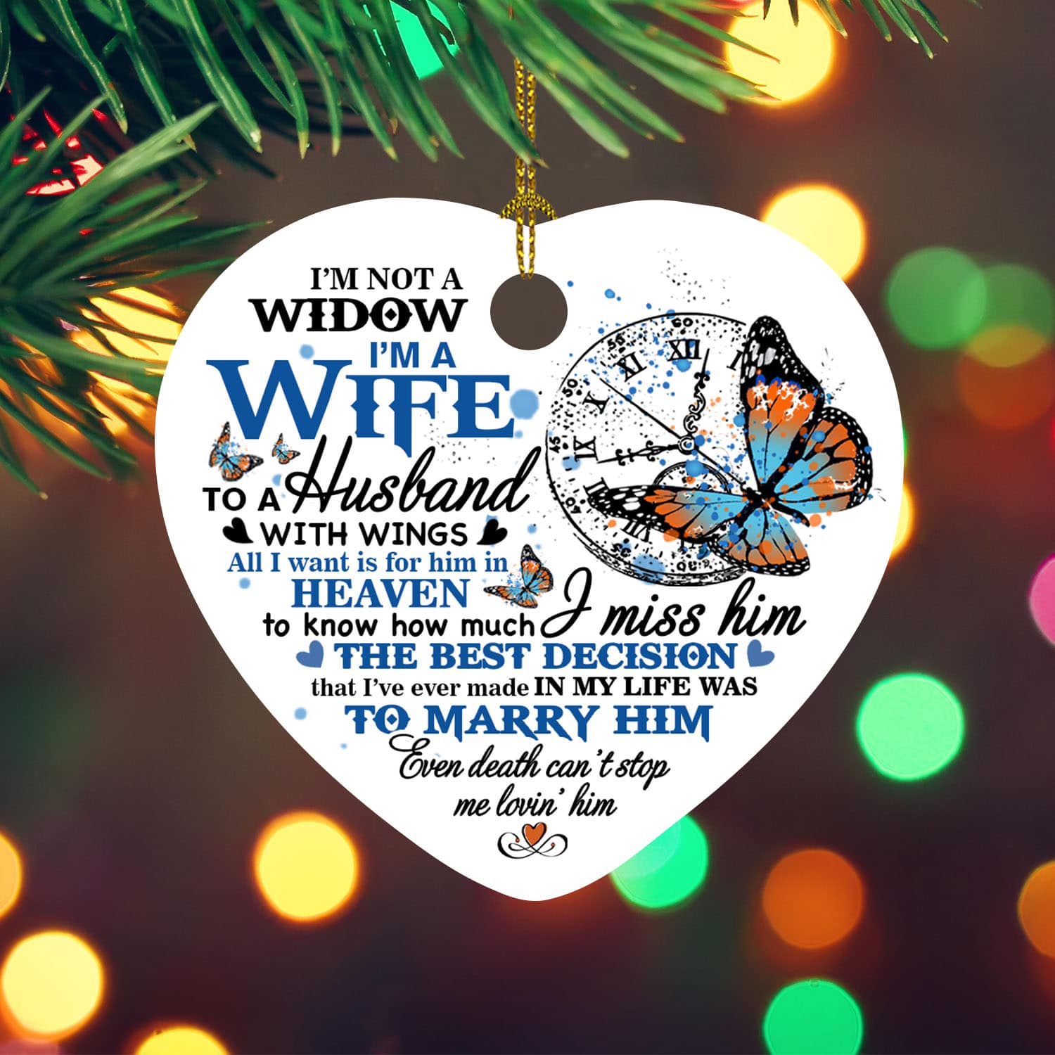 Let’s Shop I’m Not a Widow I’m a Wife to A Husband with Wings Sympathy Decorative Christmas Ornament Keepsake – Holiday Heart Ornament!