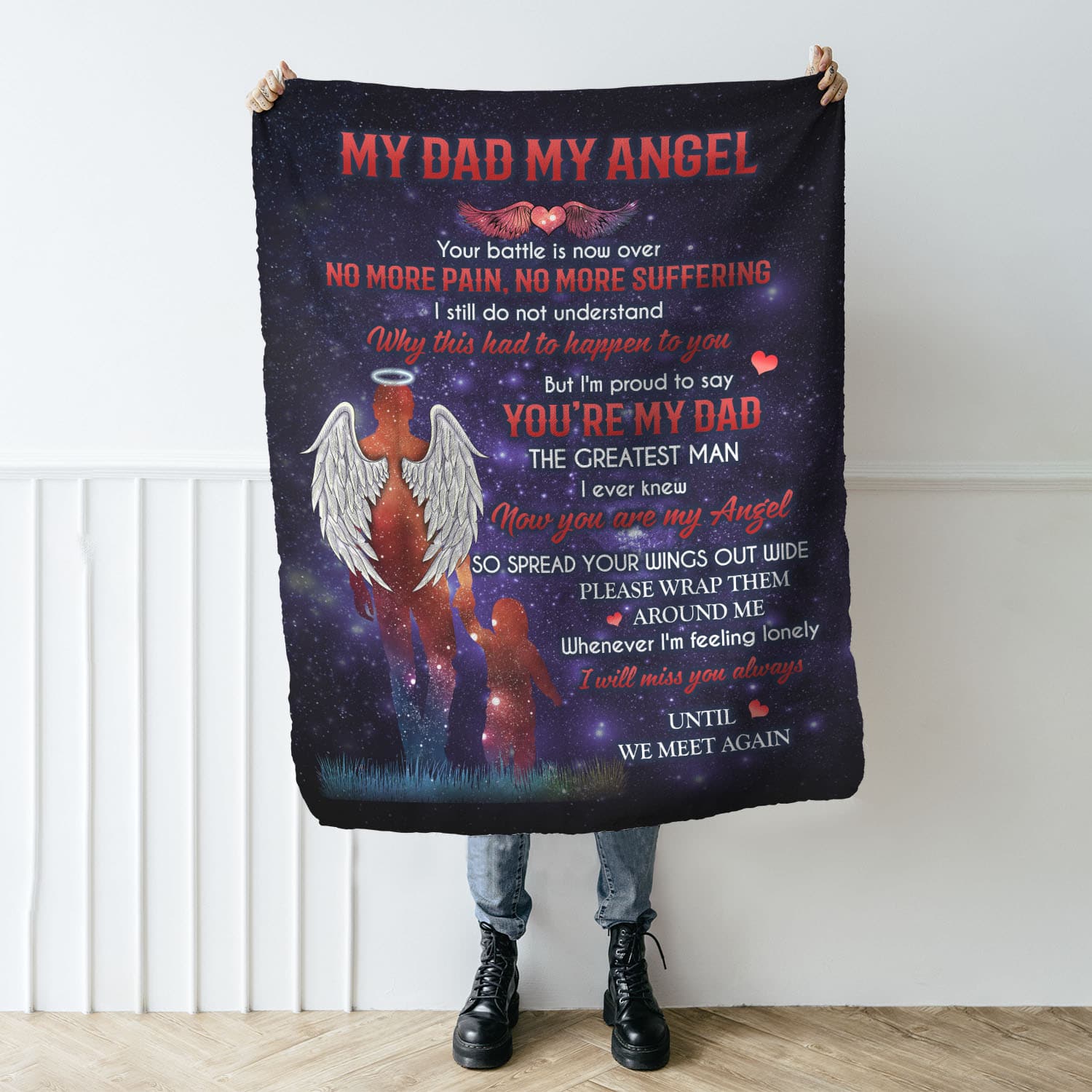Let’s Shop My Dad My Angel Your Battle Is Now Over No More Pain No More Suffering Gifts From Son Fleece Blanket – Mink Blanket!