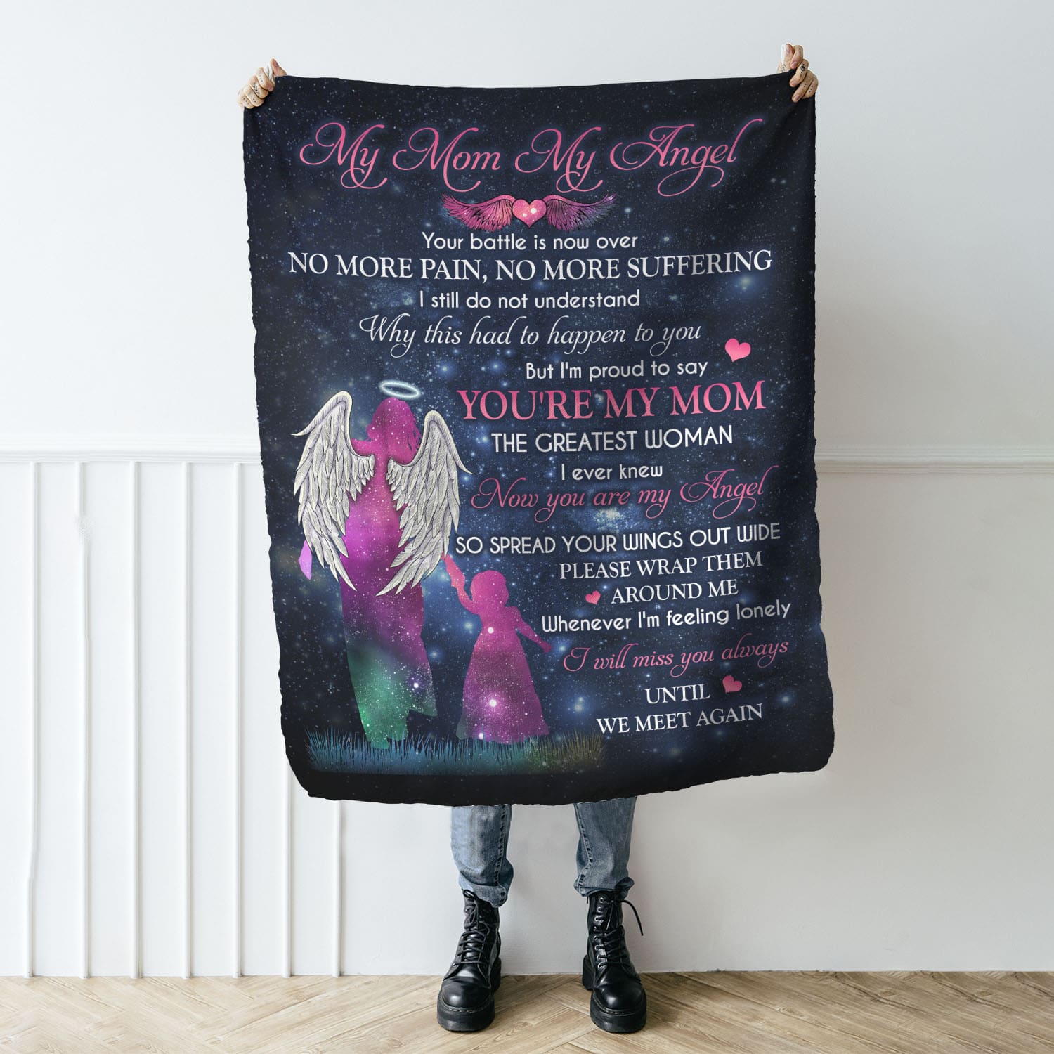 Let’s Shop My Mom My Angel Your Battle Is Now Over No More Pain No More Suffering Gifts From Daughter Fleece Blanket – Mink Blanket!