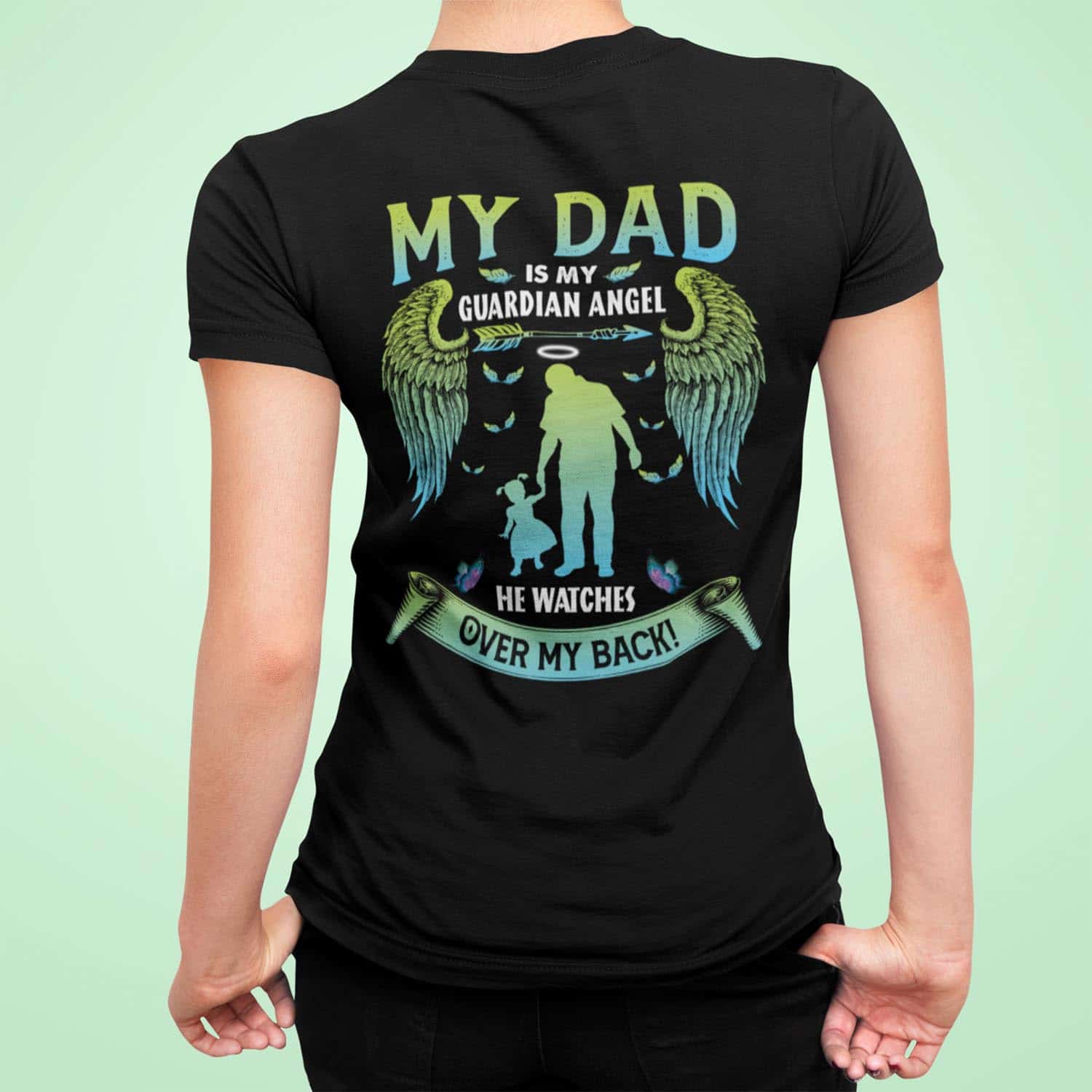 My Dad Is My Guardian Angel He Watches Over My Back Gift for Daughter Print On Back – Plain Front T-Shirt