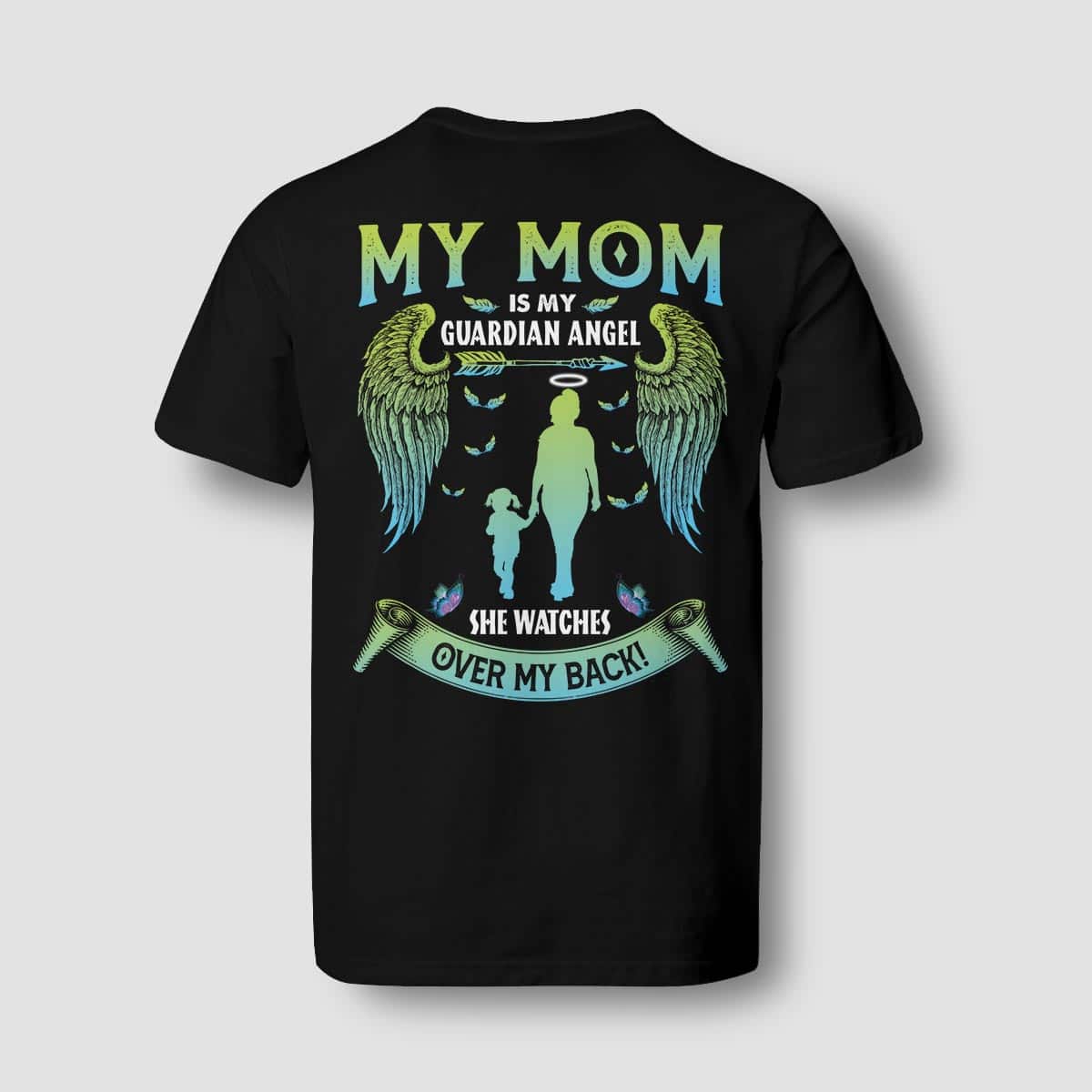 My Mom Is My Guardian Angel He Watches Over My Back Gift For Daughter Print On Back – Plain Front T-Shirt