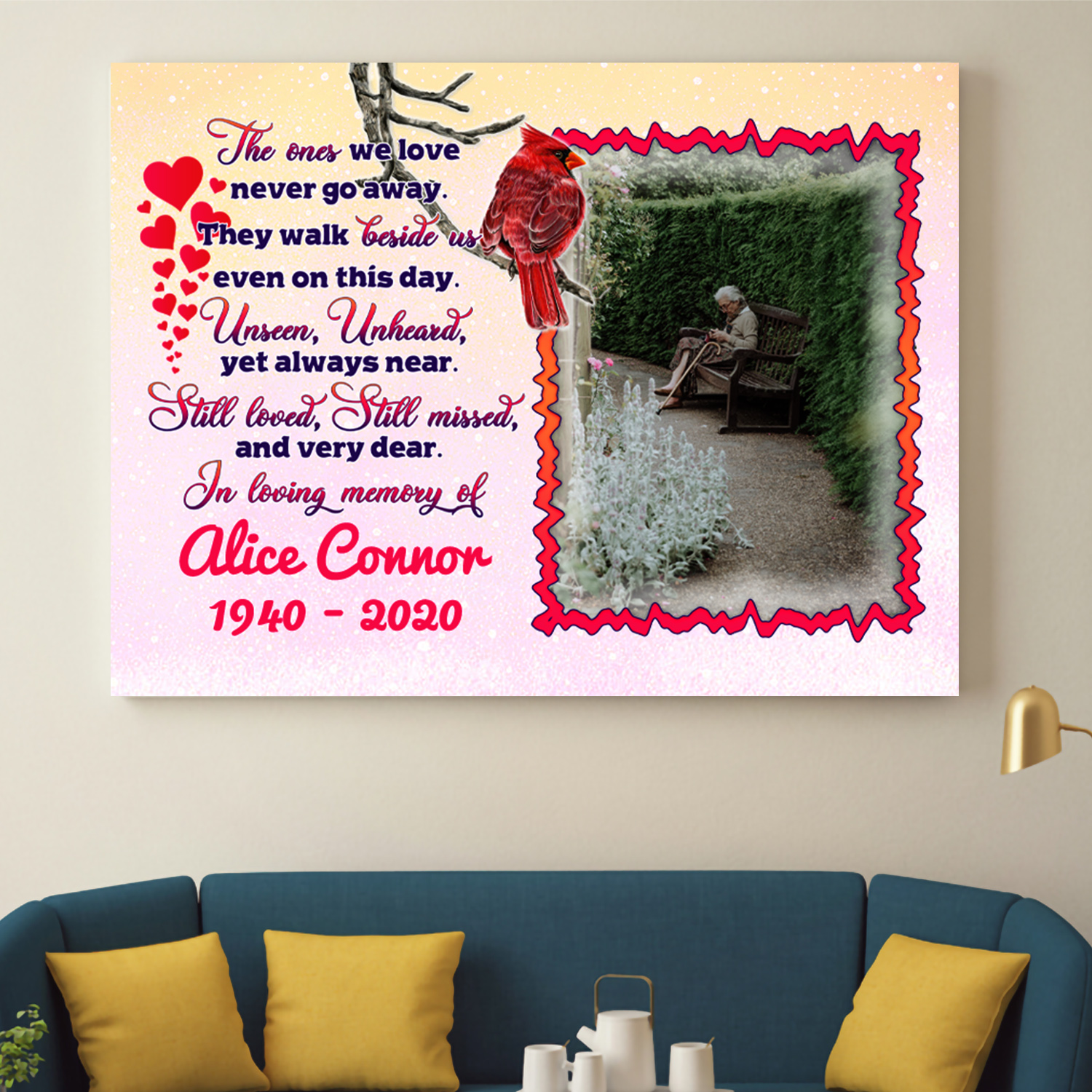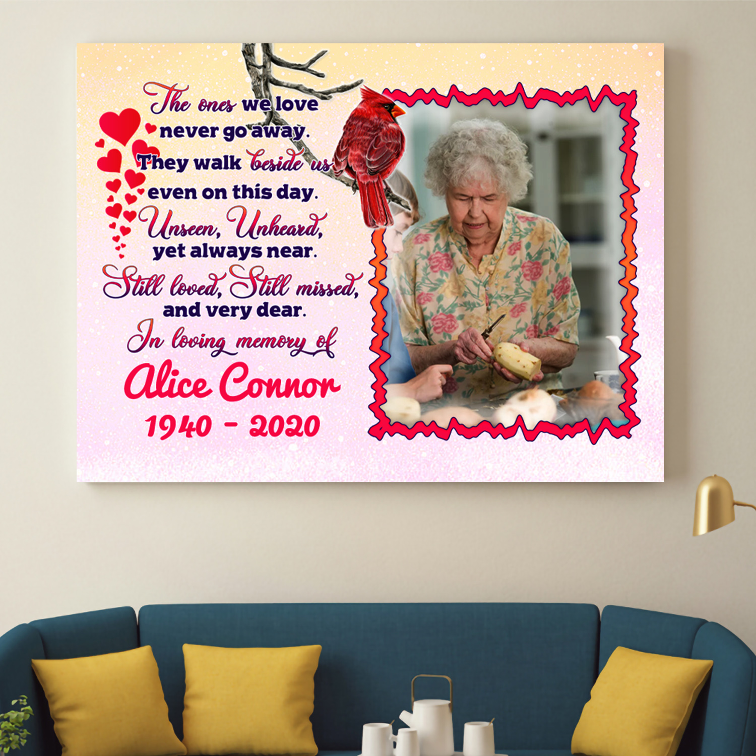 Let’s Shop Personalized Photo Memorial The Ones We Love Never Go Away They Walk Beside Us Framed Canvas – Unframed Poster!
