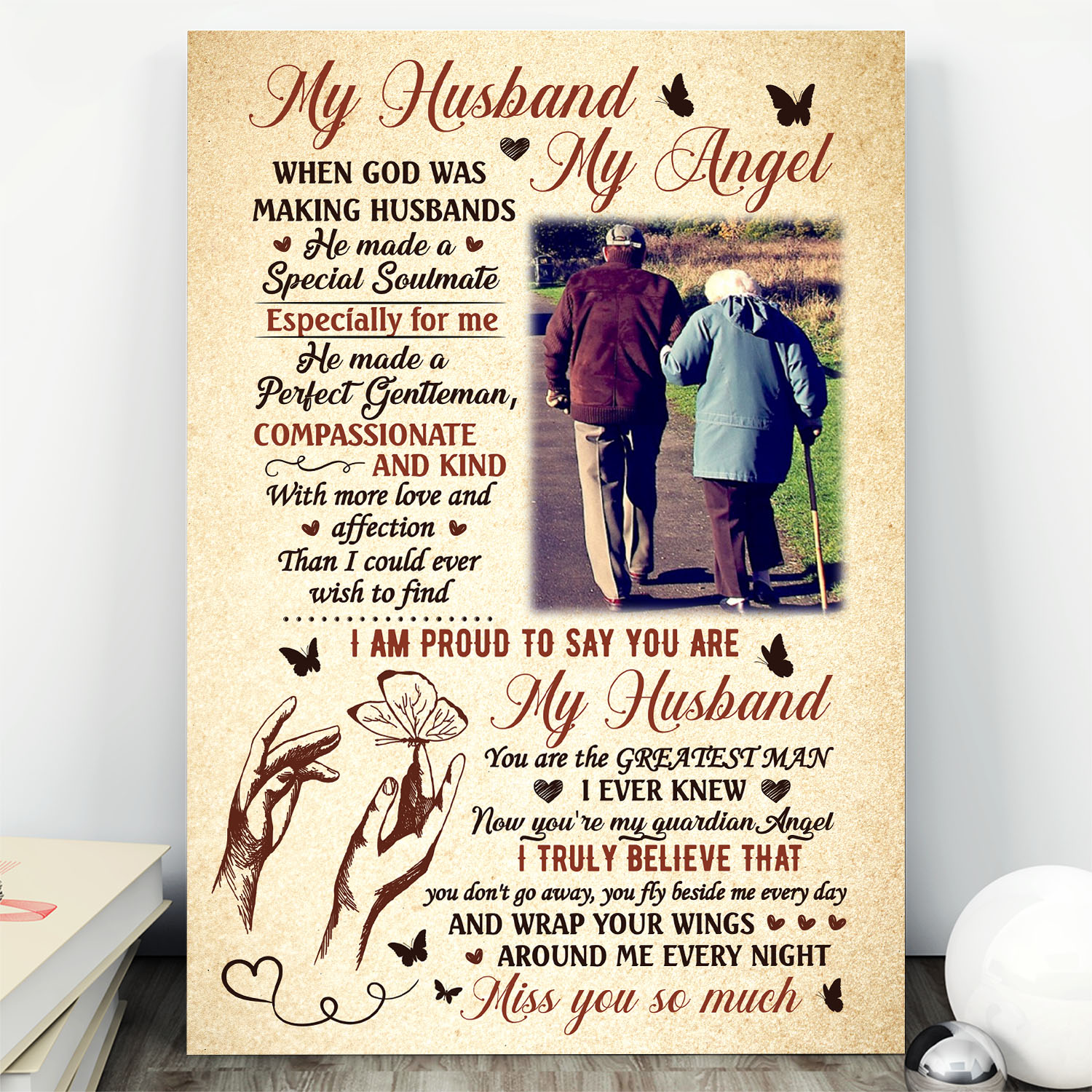 Let’s Shop Personalized Photo My Husband My Angel when God Was Making Husbands Framed Canvas – Unframed Poster!