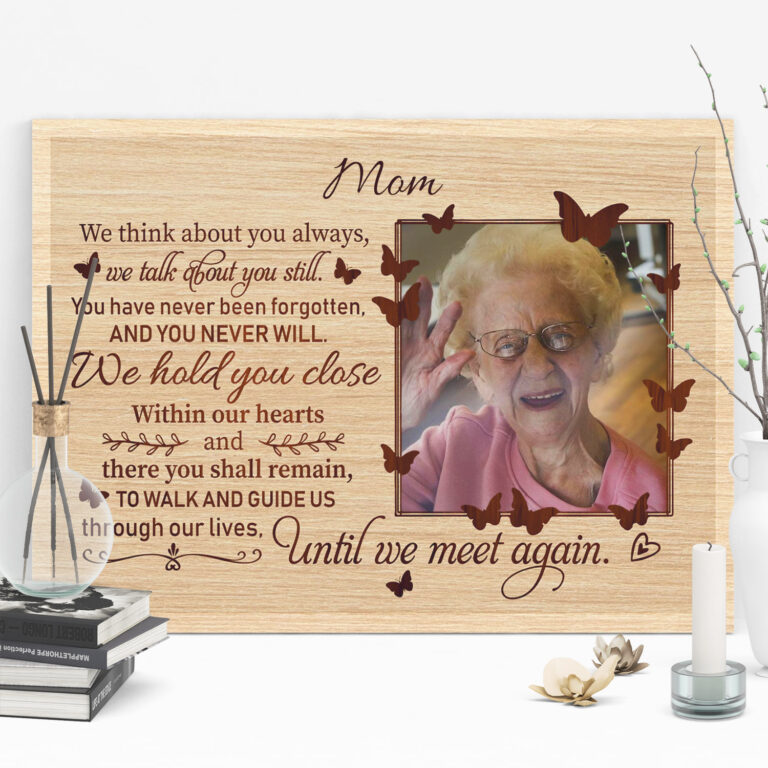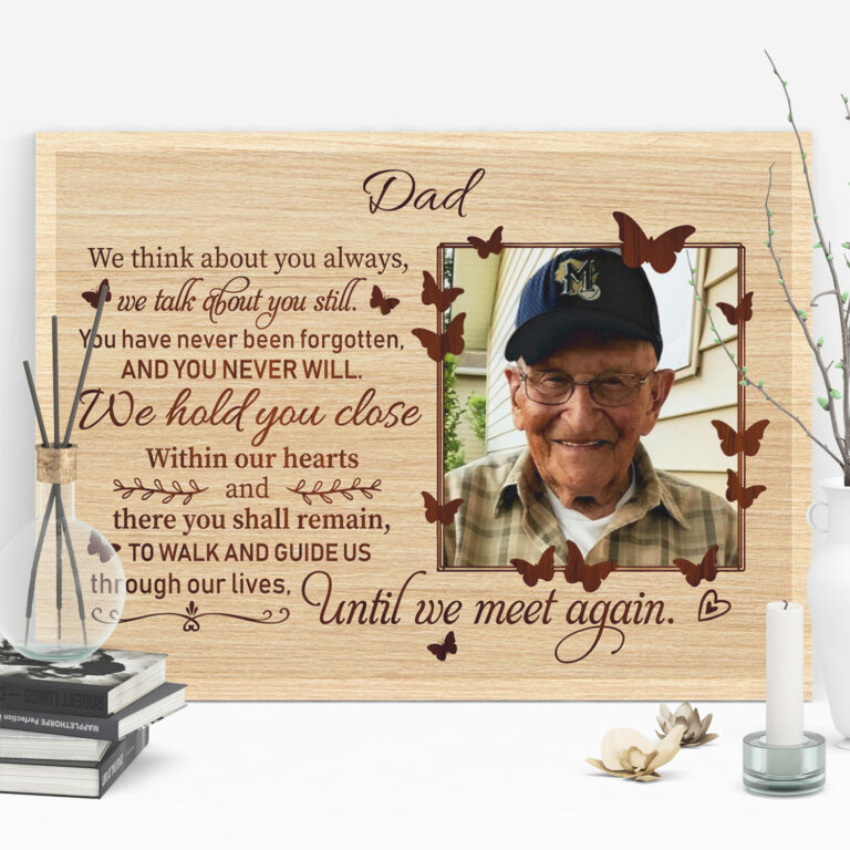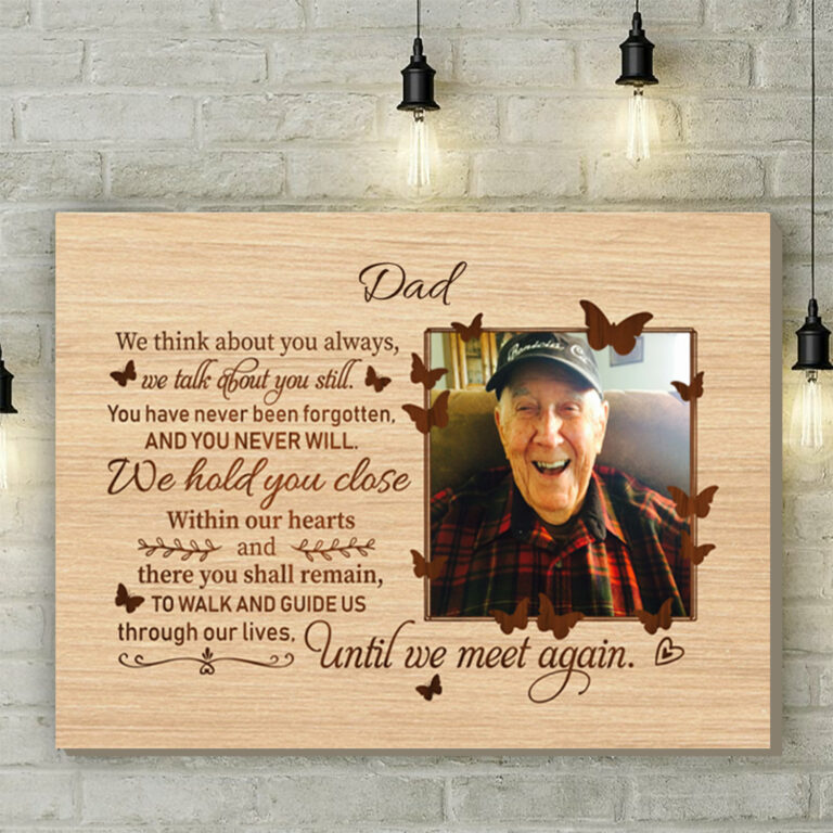 Let’s Shop Personalized Photo We Think About You Always We Talk About You Still Sympathy Framed Canvas – Unframed Poster!