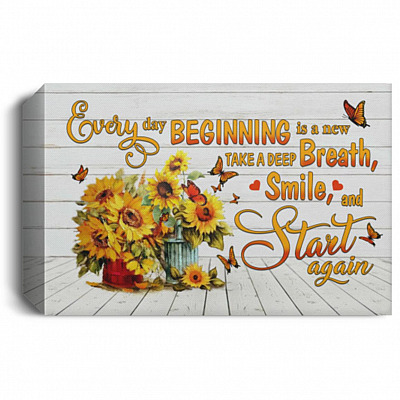 Let’s Shop Everyday Is a New Beginning Sunflower Inspirational Framed Canvas Prints – Unframed Poster – Home Decor Wall Art!