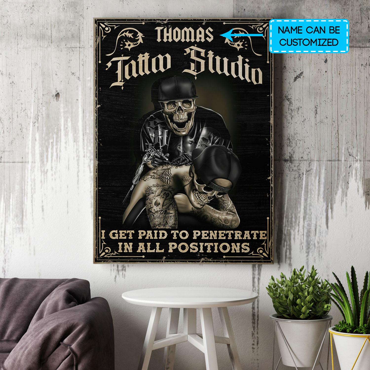 Let’s Shop Personalized Tattoo Studio I Get Paid To Penetrate In All Positions Framed Canvas Prints – Unframed Poster!