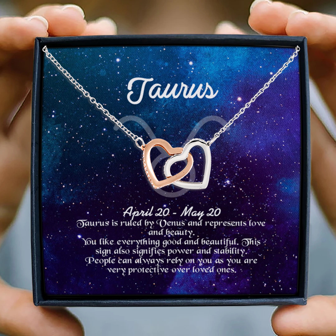 Let’s Shop Taurus Sign Constellation Horoscope Zodiac Birthday Astrology Joined Interlocking Hearts Pendant Necklace!