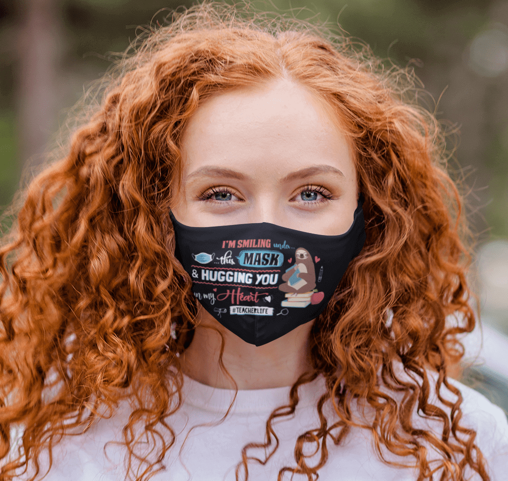 Let’s Shop I’m Smiling Under This Mask Teacher Life Washable Reusable Custom – Printed Cloth Face Mask Cover!