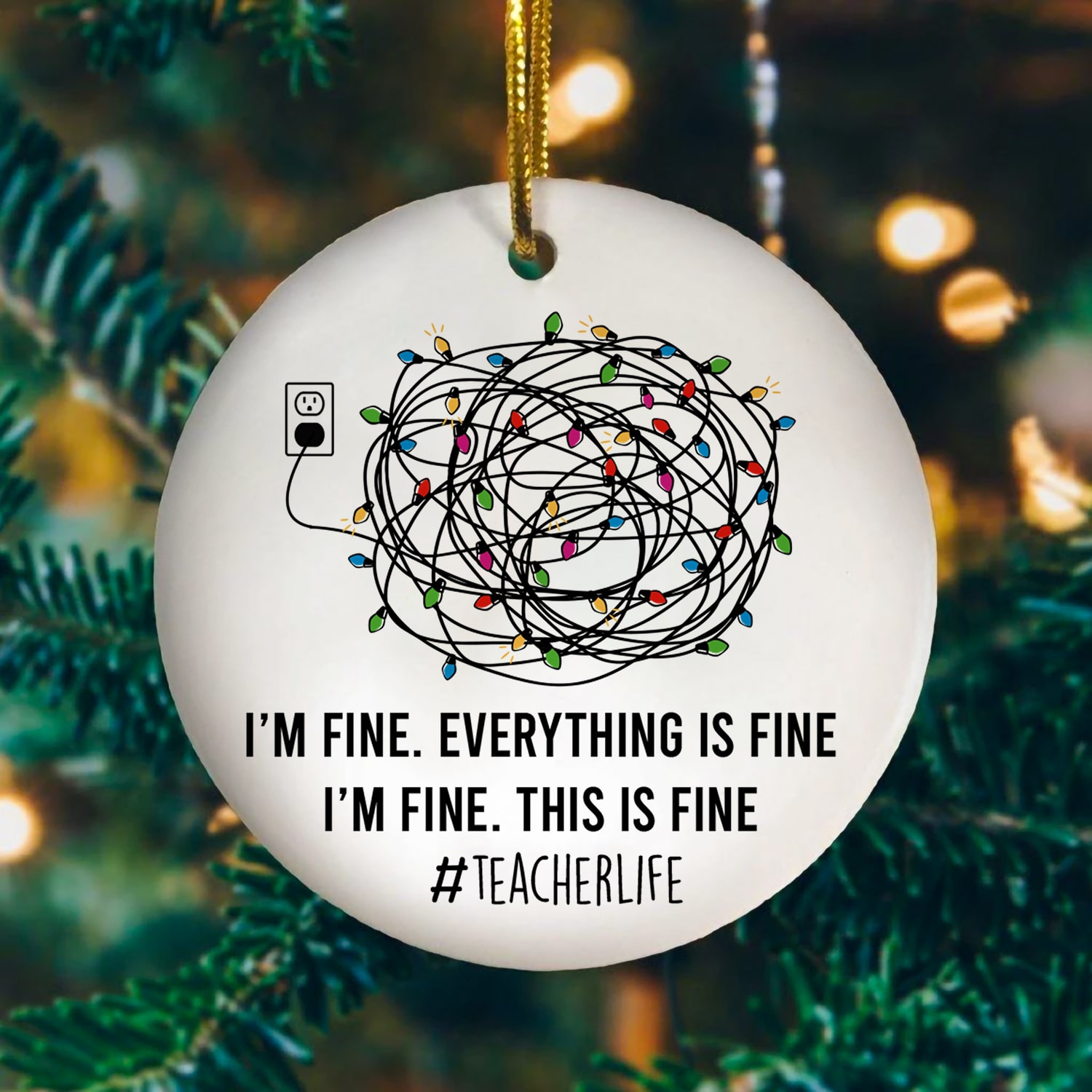 Let’s Shop I’m Fine Everything Is Fine This Is Fine Decorative Christmas Ornament – Holiday Flat Circle Ornament!