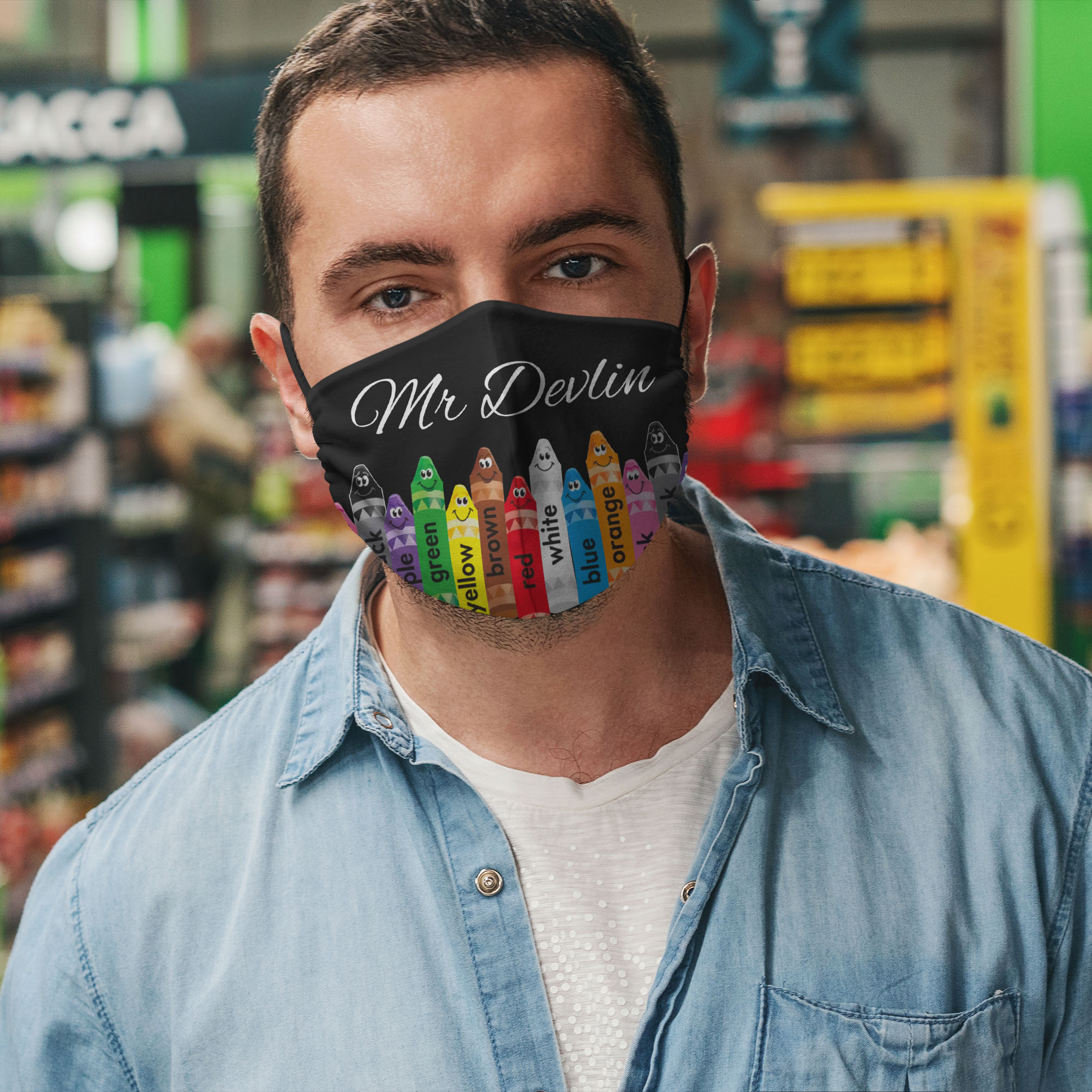 Shop Personalized Teacher Face Mask – Teacher Crayon Washable Reusable Custom – Printed Cloth Face Mask Cover.