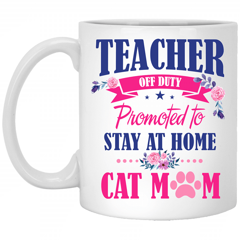 Teacher Off Duty Promoted To Stay At Home Cat Mom Ceramic Coffee Mug – Beer Stein -Water Bottle – Color Changing Mug
