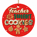 Shop Teacher Of Smart Cookies Christmas Ornament Keepsake – Holiday Flat Circle Porcelain Ceramic Ornament.