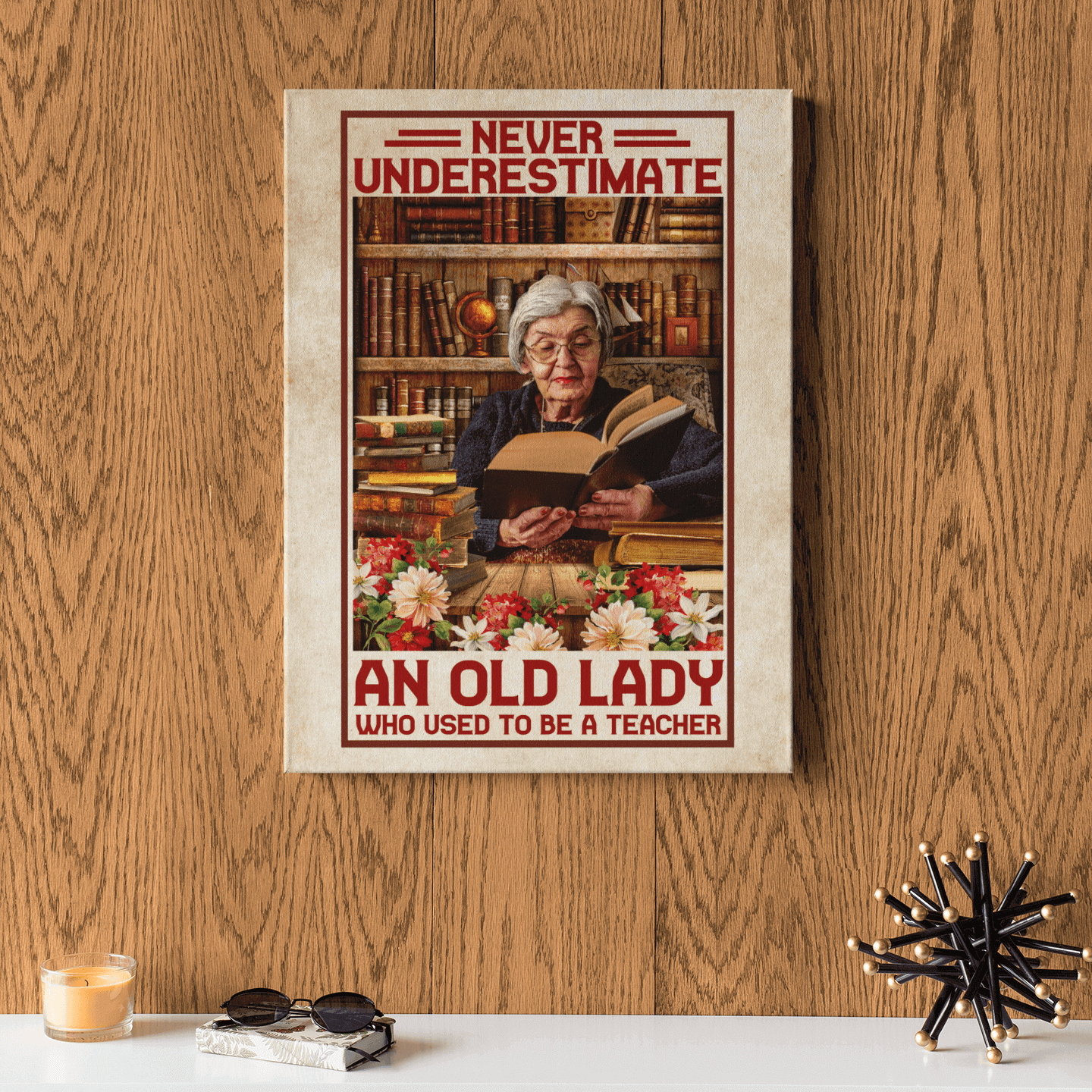 Let’s Shop Never Underestimate An Old Lady Who Used To Be A Teacher Framed Canvas Prints – Teacher Unframed Poster!