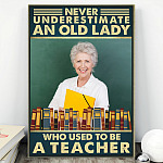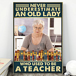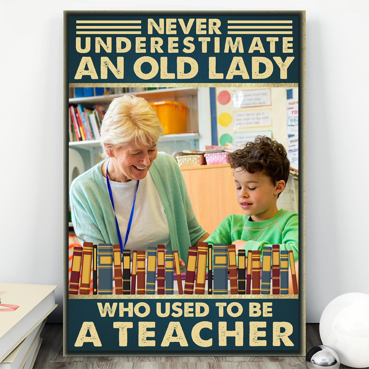 Let’s Shop Personalized Photo Never Underestimate an Old Lady Who Used to Be a Teacher Framed Canvas – Unframed Poster!
