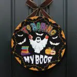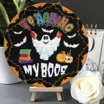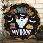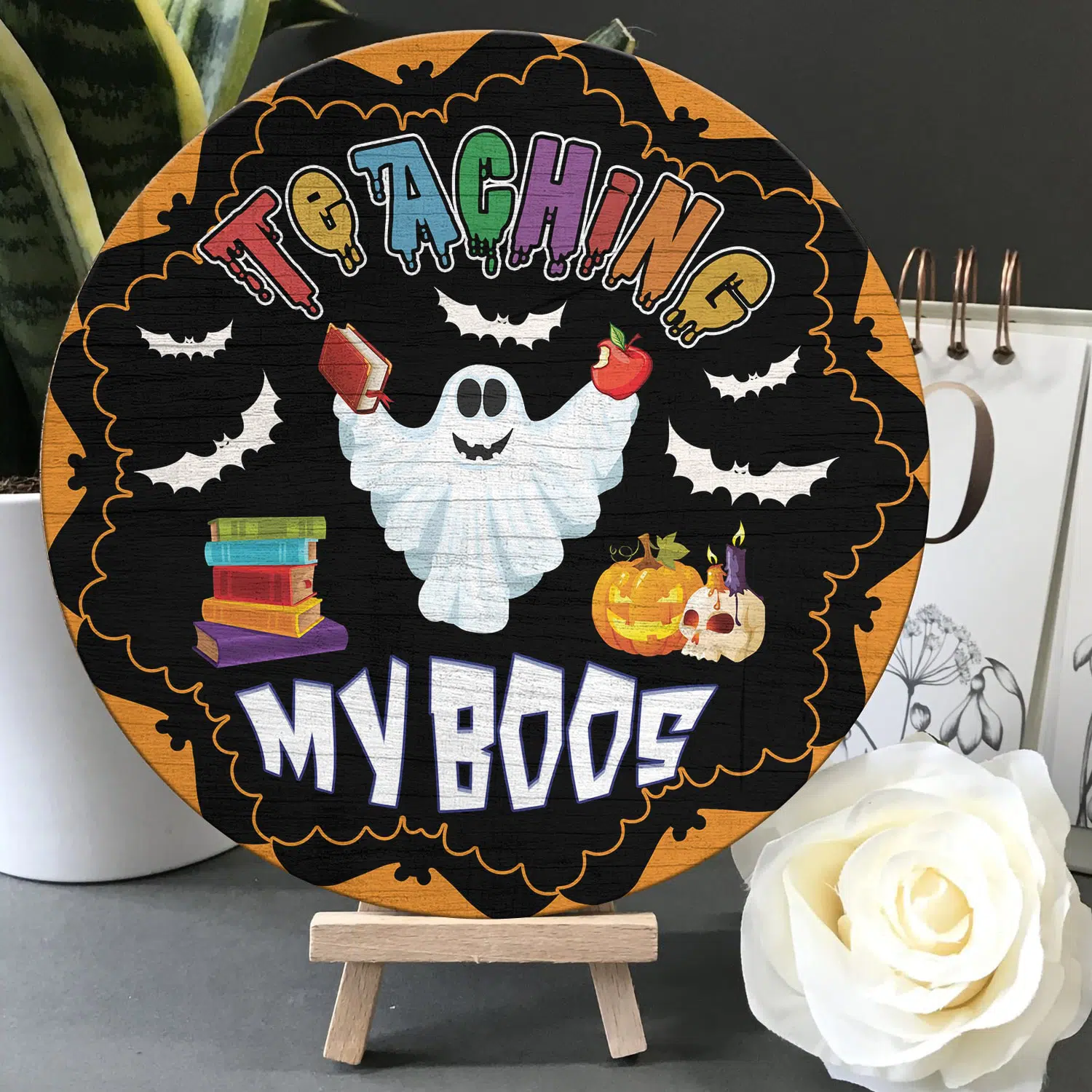 Let’s Shop Teaching My Boos Funny Teacher Halloween Circle Wooden Door Sign – Front Porch Sign Indoor Outdoor Decor!