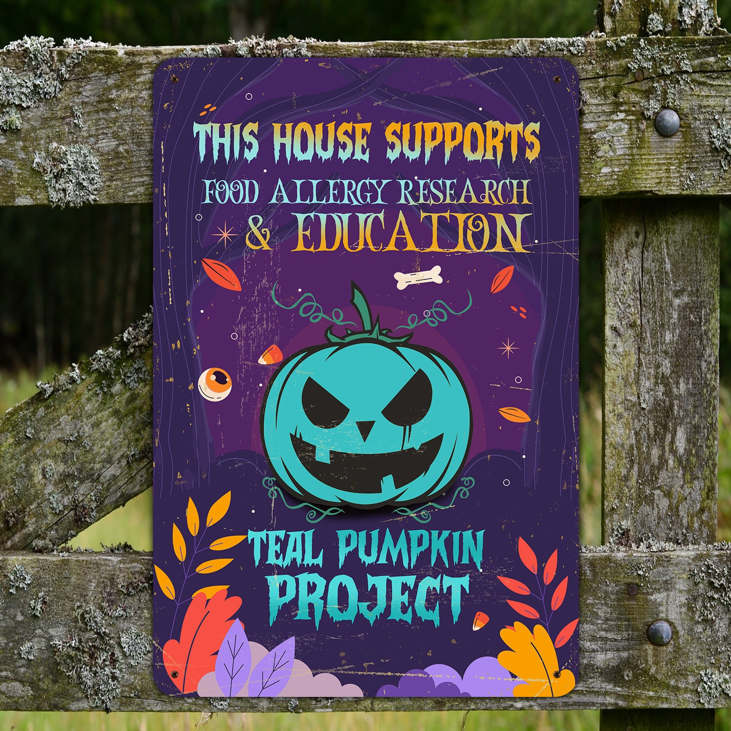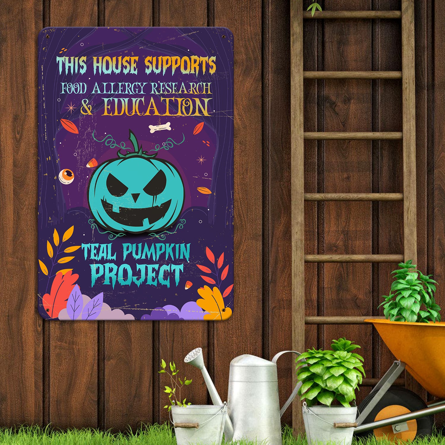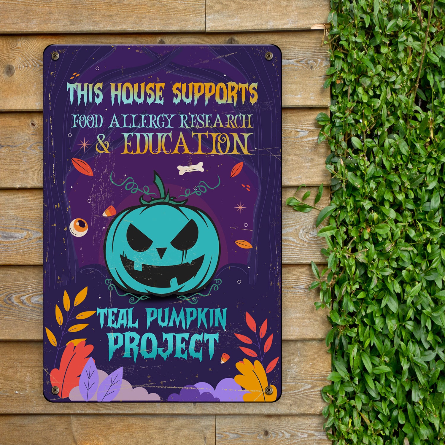 Let’s Shop This House Support Food Allergy Teal Pumpkin Project Decorative Metal Sign – Halloween Teal Pumpkin Sign!