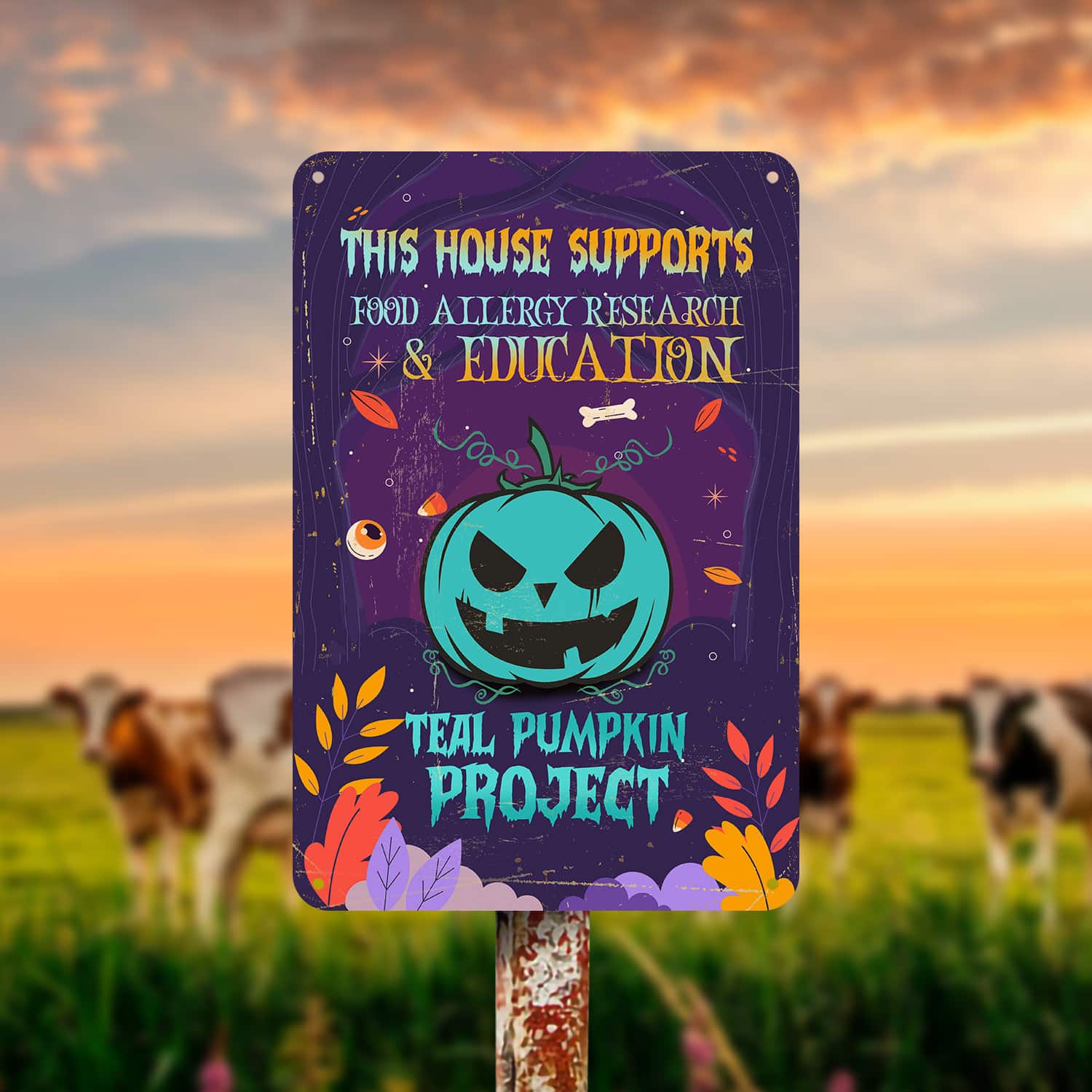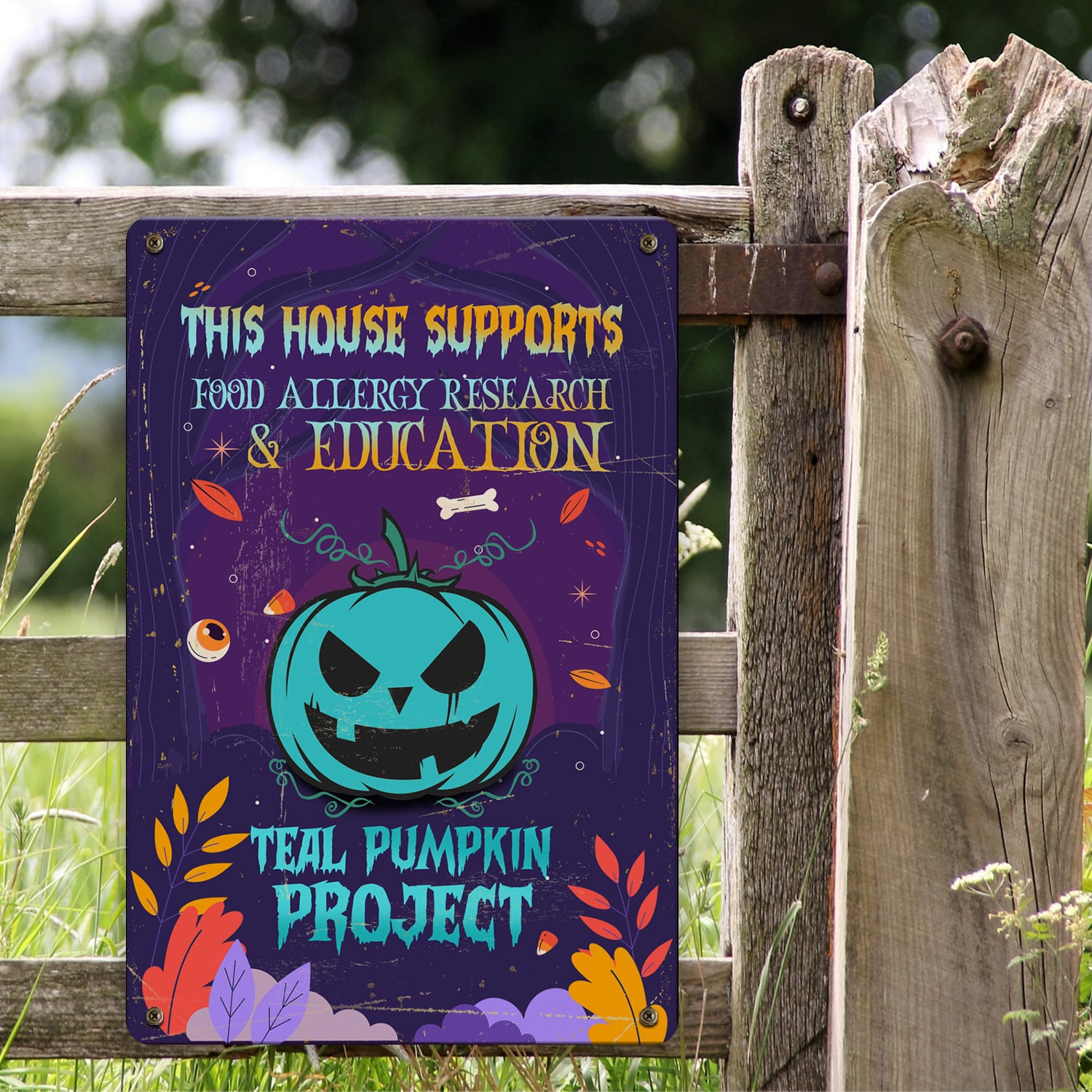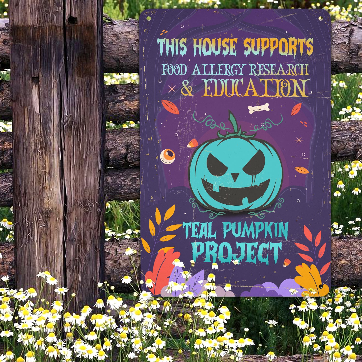 Let’s Shop This House Support Food Allergy Teal Pumpkin Project Decorative Metal Sign – Halloween Teal Pumpkin Sign!