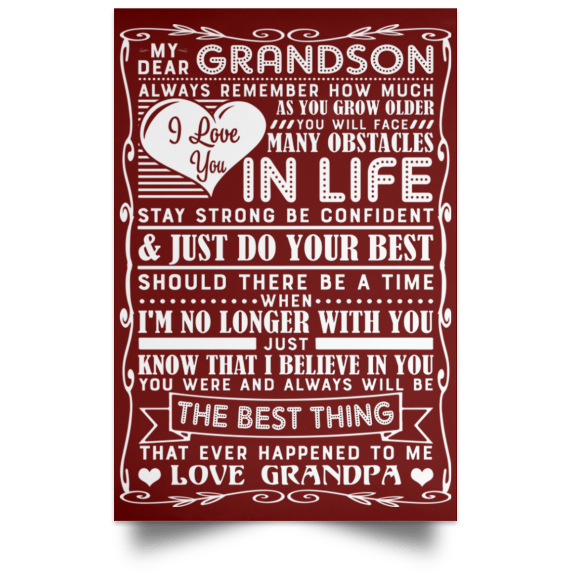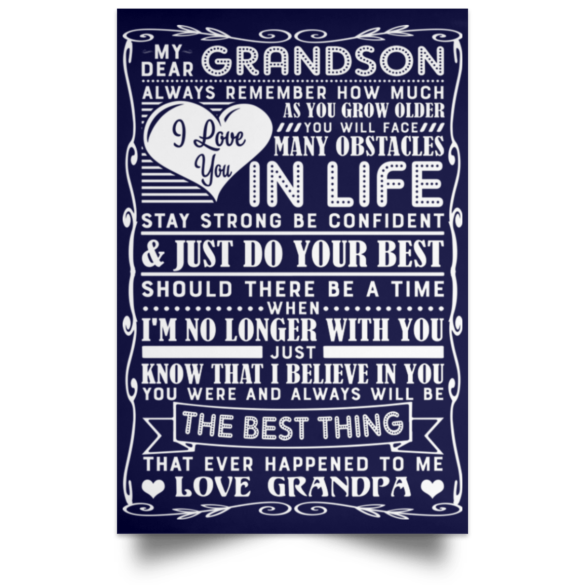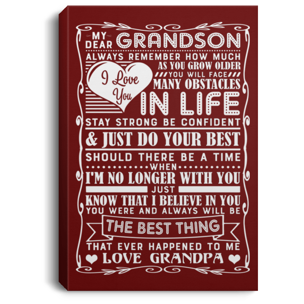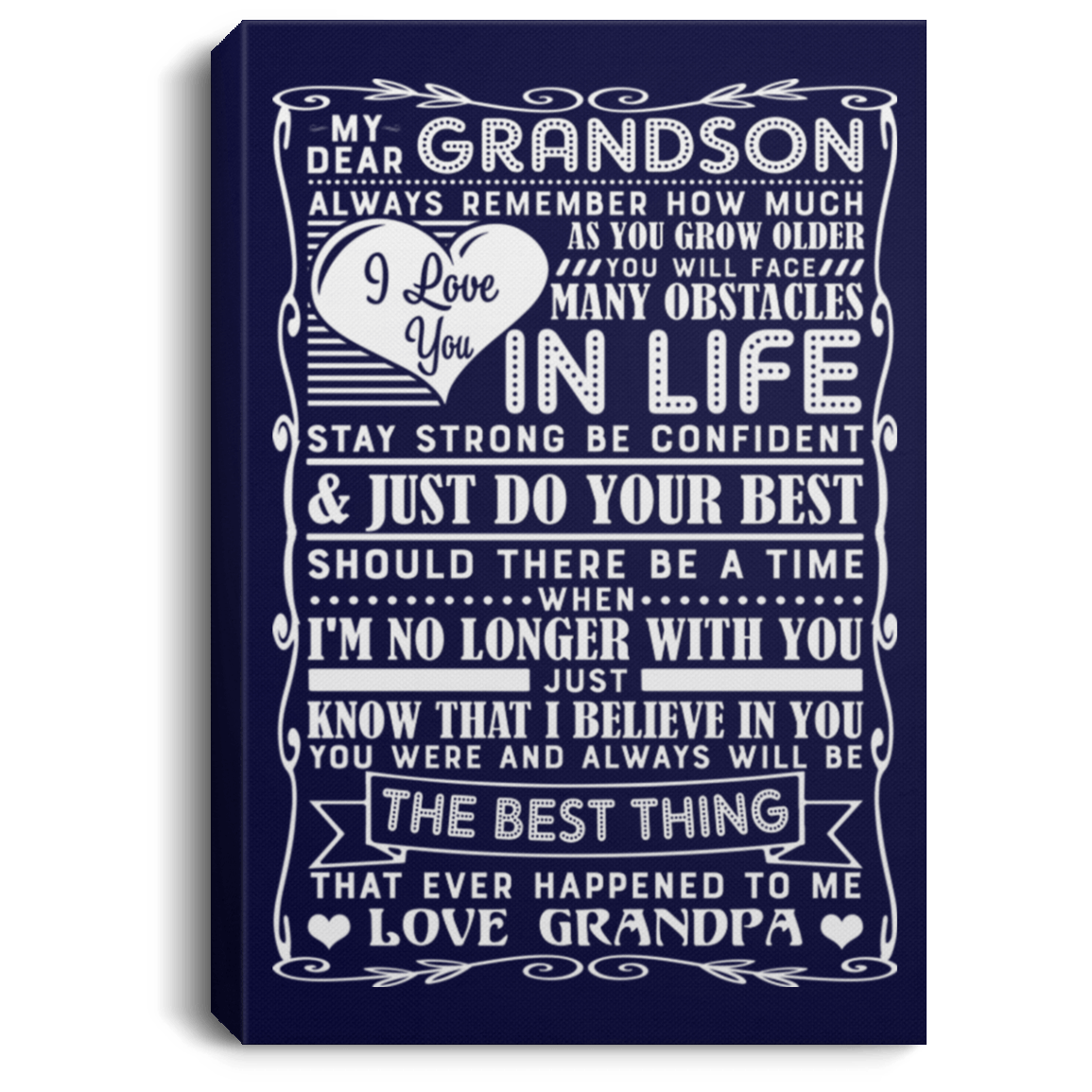 My Dear Grandson Always Remember How Much I Love You As You Grow Older You May Face Many Obstacles in Life Framed Canvas – Poster – Grandpa Grandson Canvas