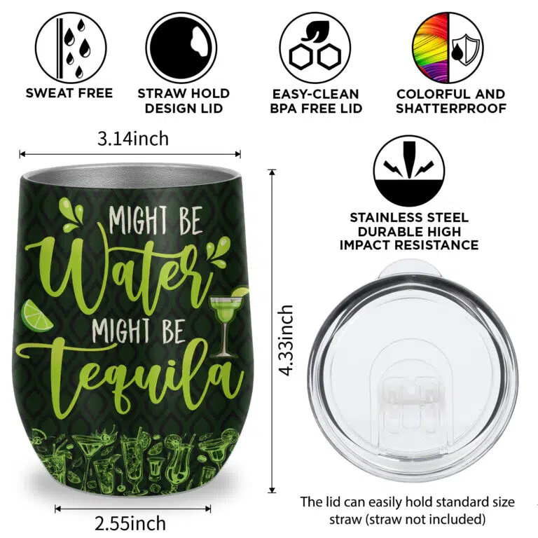 Let’s Shop Might Be Water Might Be Tequila Vacuum Insulated Cup – Tequila Lover Wine Tumbler with Lid!