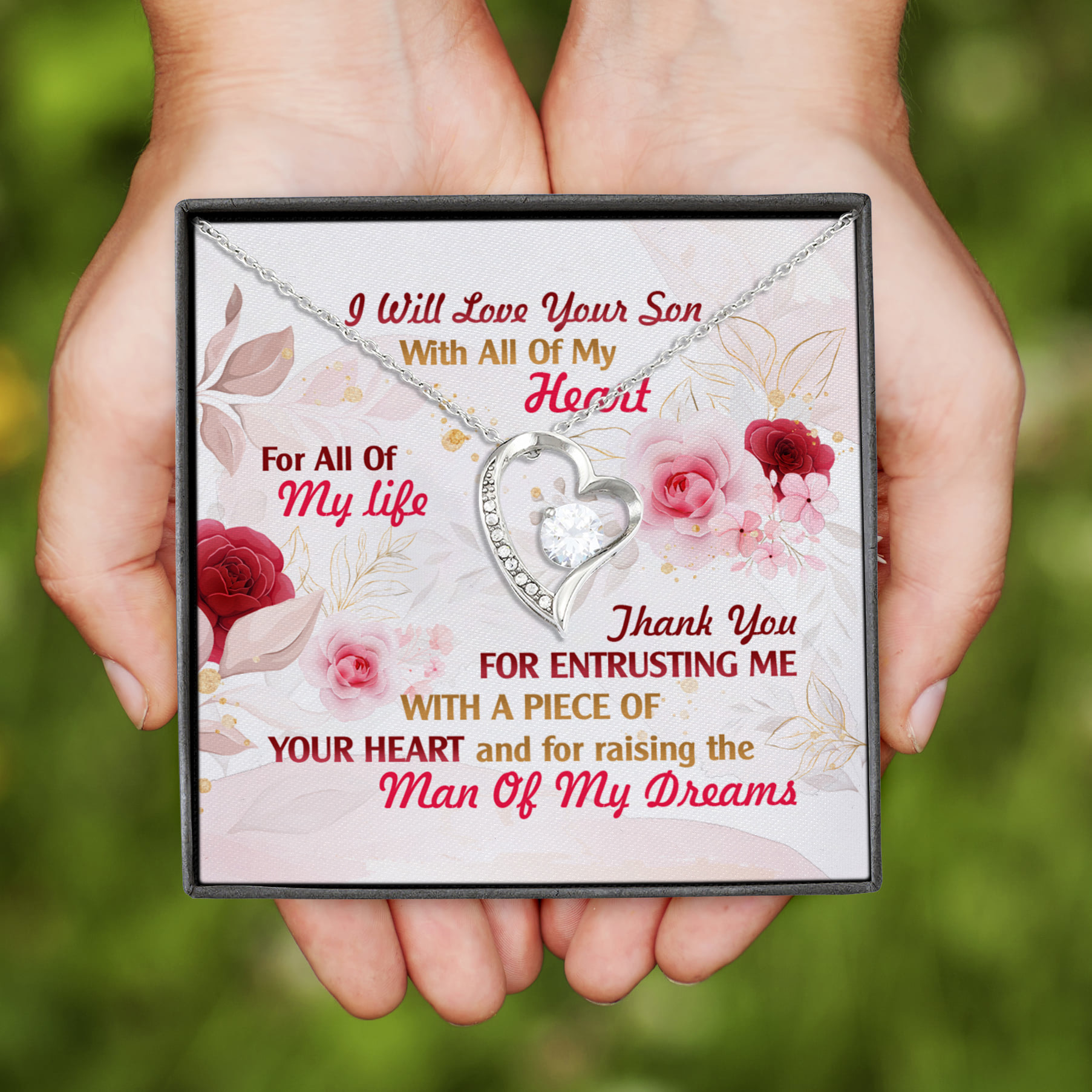 Are you spending too much time to find creative merchandise for you or suitable & special gifts for your mommy, your daddy, your son, your daughter, your children, your friends or someone you love? The struggle is over because we have various Thank You for Entrusting Me Heart Necklace, to My Future Mother-In-Law Necklace, I Will Love Your Son with All of My Heart Necklace, Thank You for Raising the Man of My Dream Necklace, Mother in Law Necklace Gift, Future Mother in Law Necklace, to My Mother in Law Necklace, to the Best Mother in Law Necklace, Gift for Mother in Law to Be, Gifts for Mother in Law at Christmas, Mothers Day Gift for Mother in Law, Gift Mother in Law Birthday, Gift to Mother in Law on Her Birthday, to Mom of Groom Gift, Mom of Groom, Mother of Groom Necklace, Mom of Husband Necklace which will make perfect presents for your beloveds. In order to make your present stand out, we have created lots of unique and awesome customized photo gifts & personalized designs.