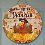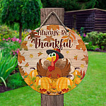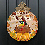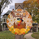 Let’s Shop Always Be Thankful Turkey Decorative Circle Wooden Door Sign – Front Porch Sign Indoor Outdoor Decor Farmhouse!