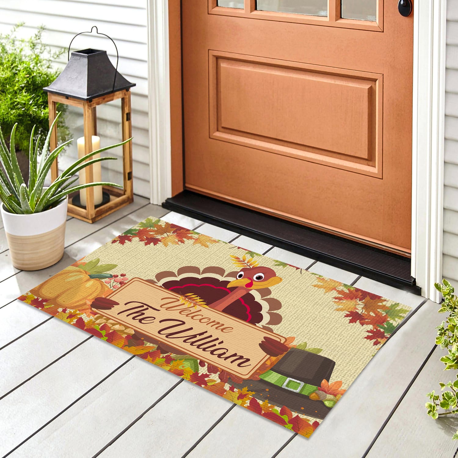 Let’s Shop Personalized Family Name Turkey Thanksgiving Doormat – Outdoor Indoor Doormat – Funny Thanksgiving Doormat!