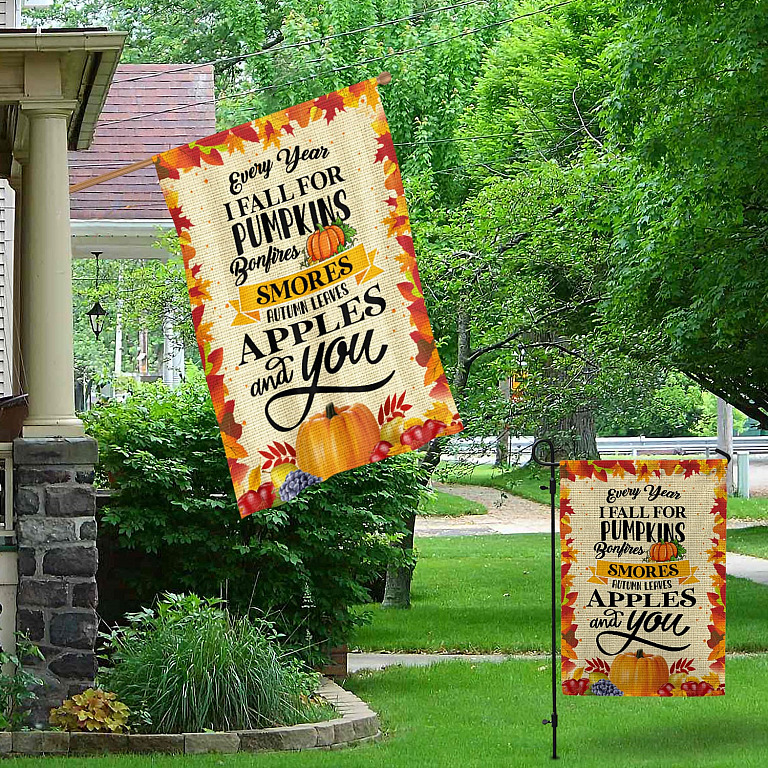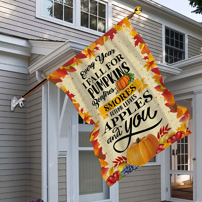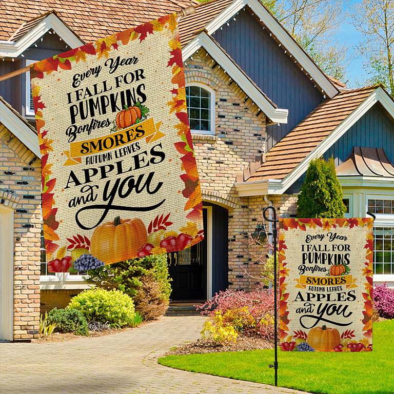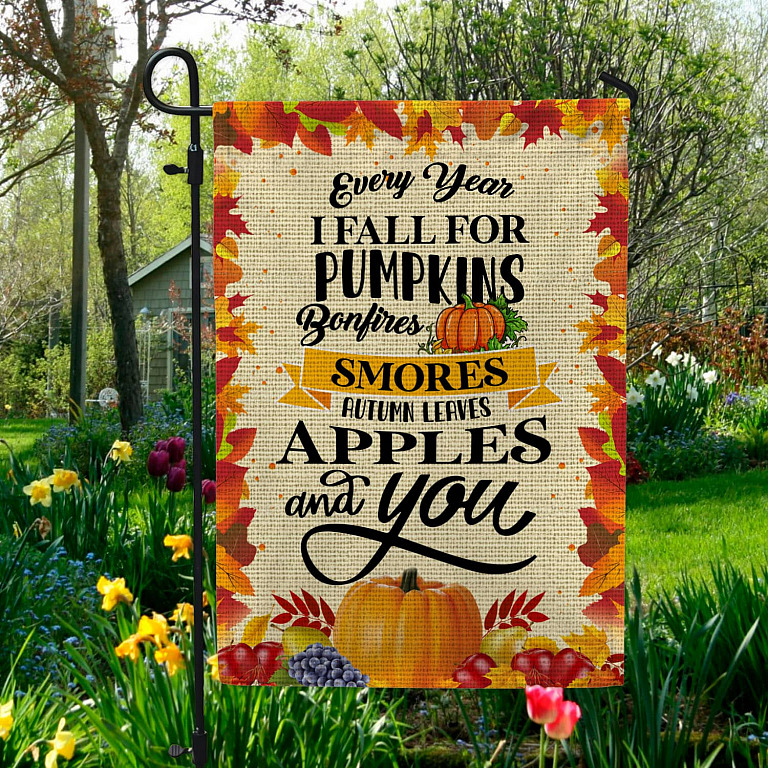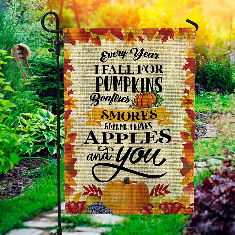 Let’s Shop Every Year I Fall For Pumpkin Bonfires Smores Autumn Leaves Apples And You Garden Flag – House Flag!