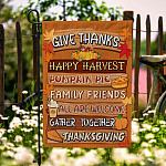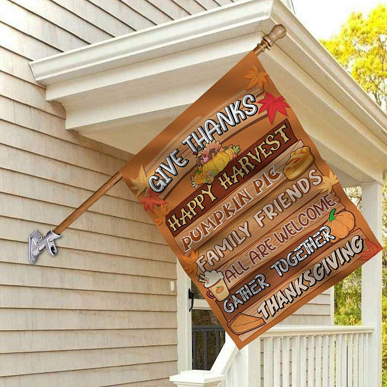 Let’s Shop Give-Thanks Happy Harvest Pumpkin Pie Family Friends All Are Welcome Garden Flag – Thanksgiving House Flag!