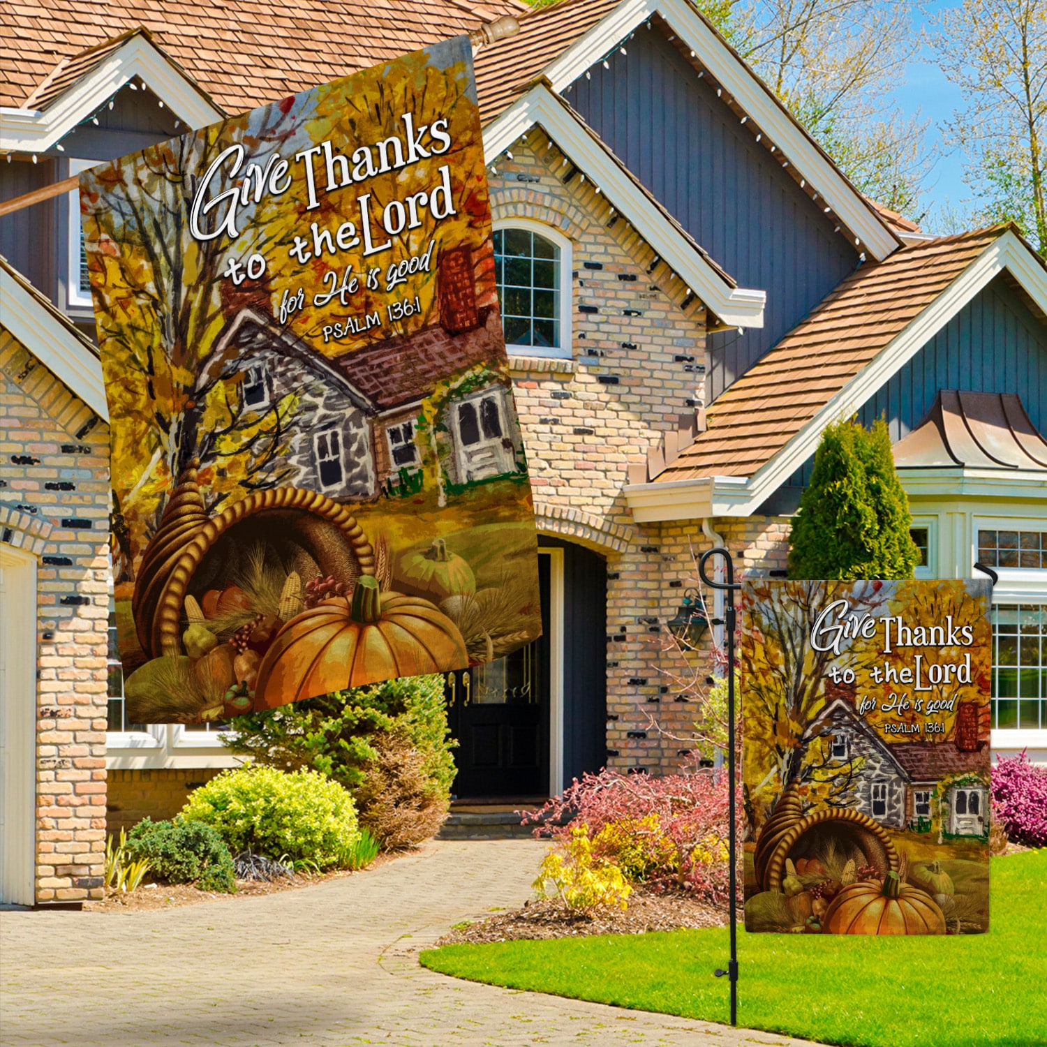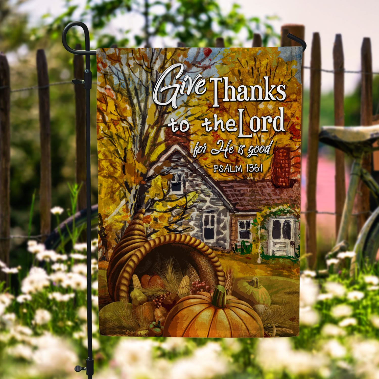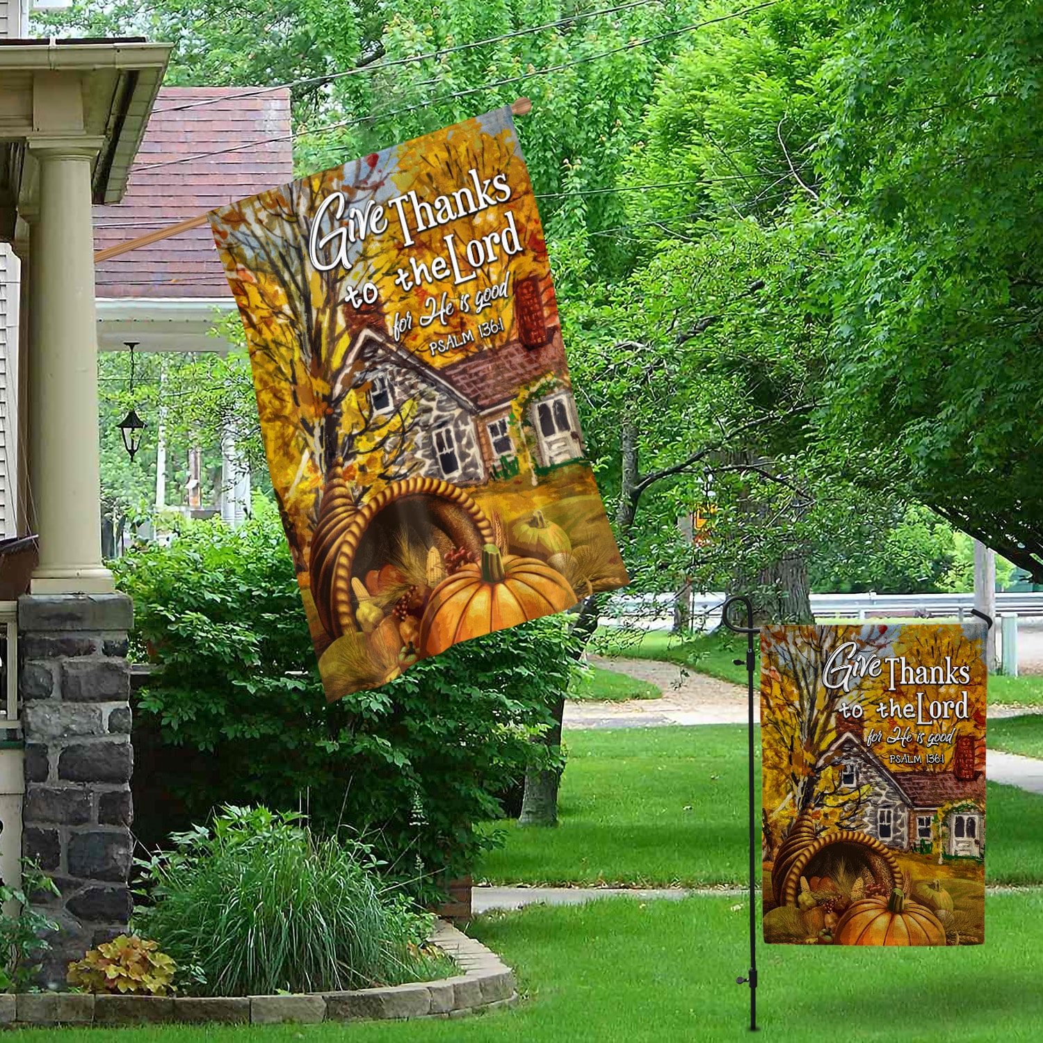 Let’s Shop Give Thanks To The Lord For He Is Good Garden Flag – Psalm 136 1 House Flag – Thanksgiving Flag!