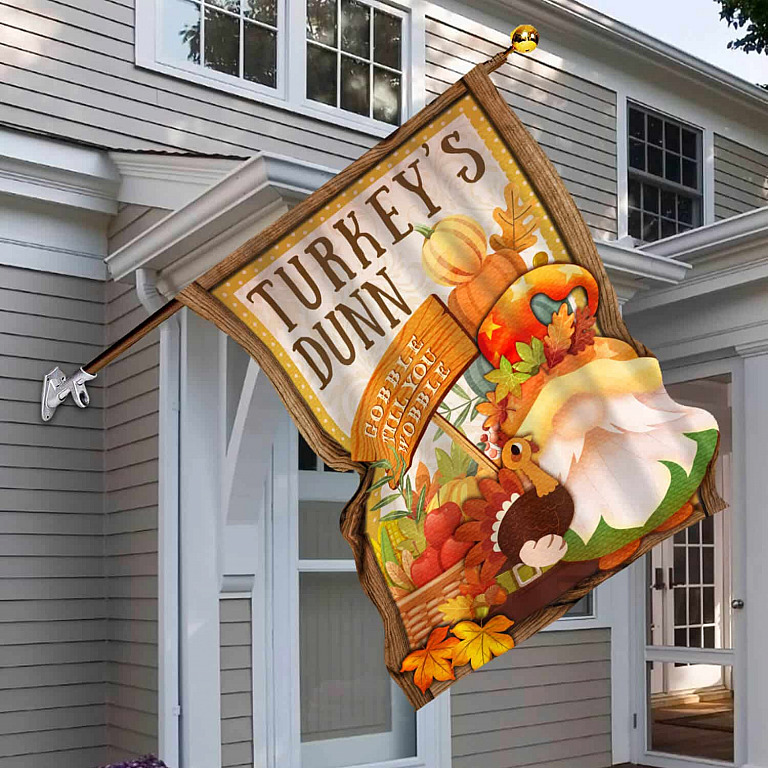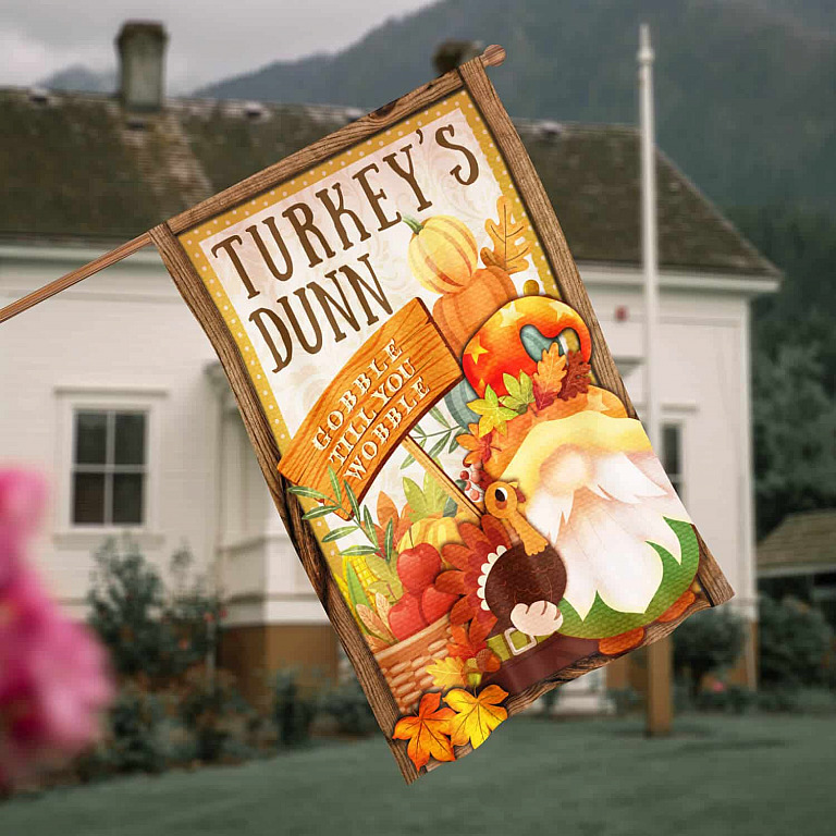 Let’s Shop Turkey’s Dunn Gobble Till You Wobble Gnome Seasonal Autumn Flag – Thanksgiving Garden Flag – House Flag!