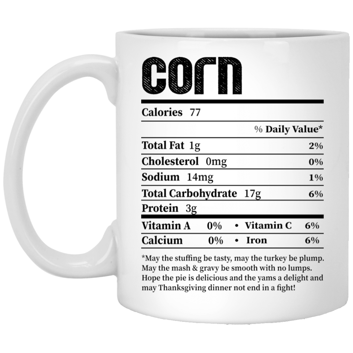 Corn Costume Funny Thanksgiving Food Nutrition Facts Ceramic Coffee Mug – Beer Stein – Water Bottle