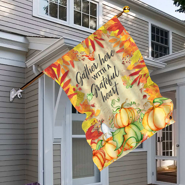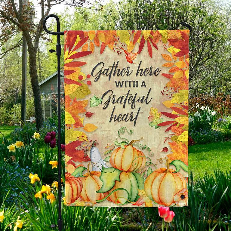 Let’s Shop Gather Here With A Grateful Heart Welcome Pumpkin Patch Outdoor Indoor Garden Flag – House Flag – Wall Flag!