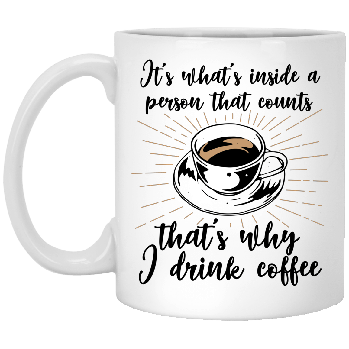 Shop It’s-What’s-Inside A Person That Counts That’s Why I Drink Coffee Coffee Mug – Beer Stein – Water Bottle.