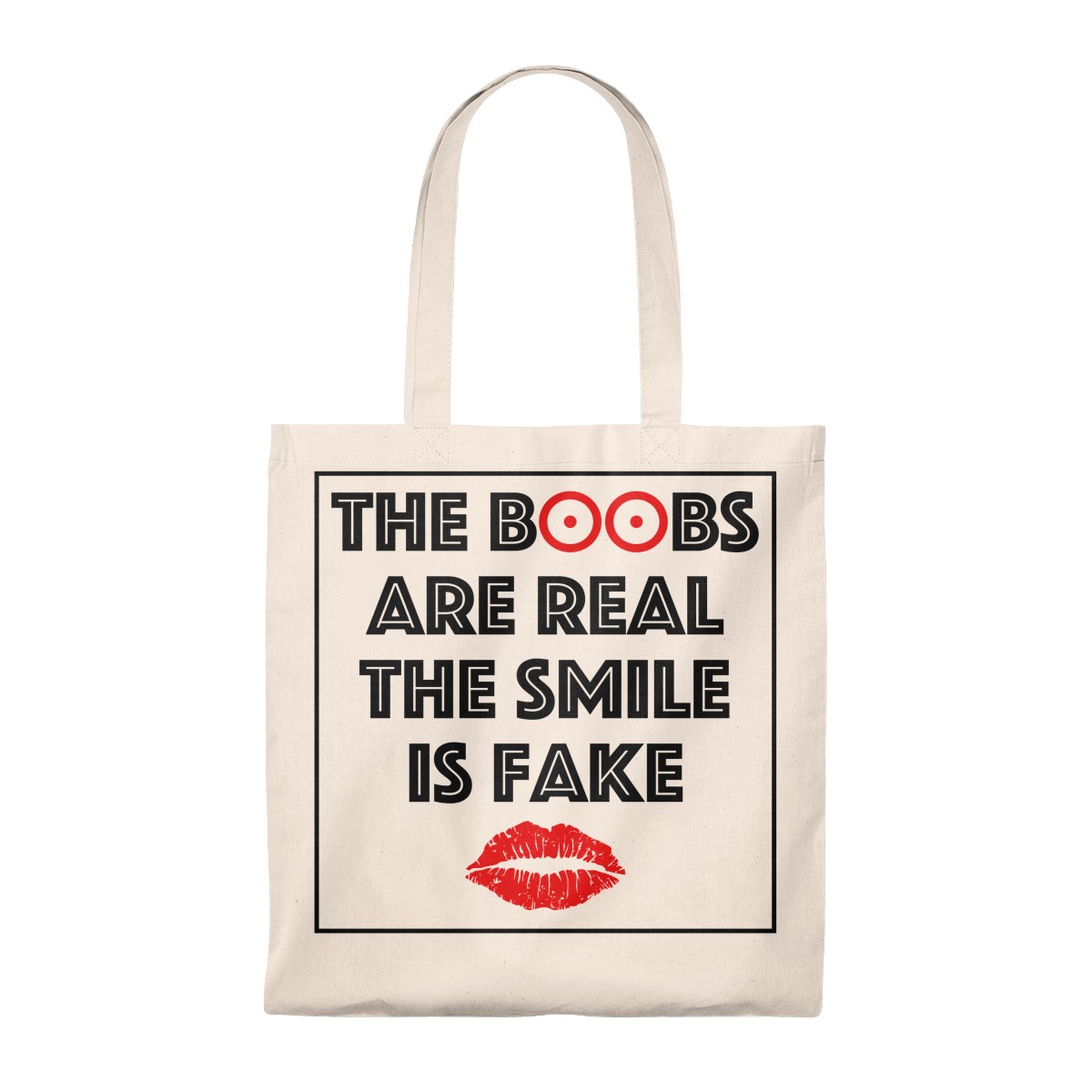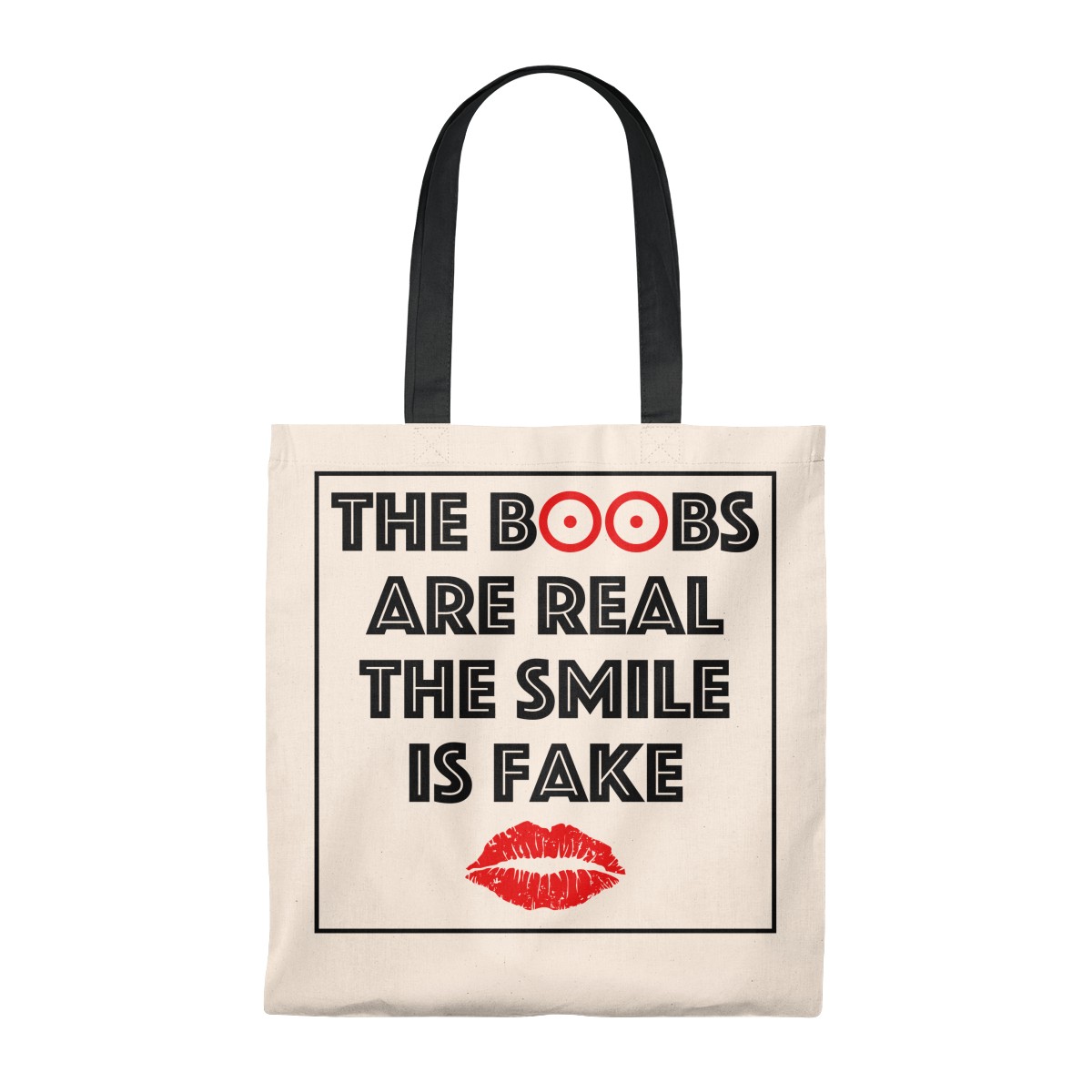 The Boobs Are Real The Smile Is Fake Vintage Canvas Tote Bag - Shoulder Bag - Reusable Grocery Shopping Bag