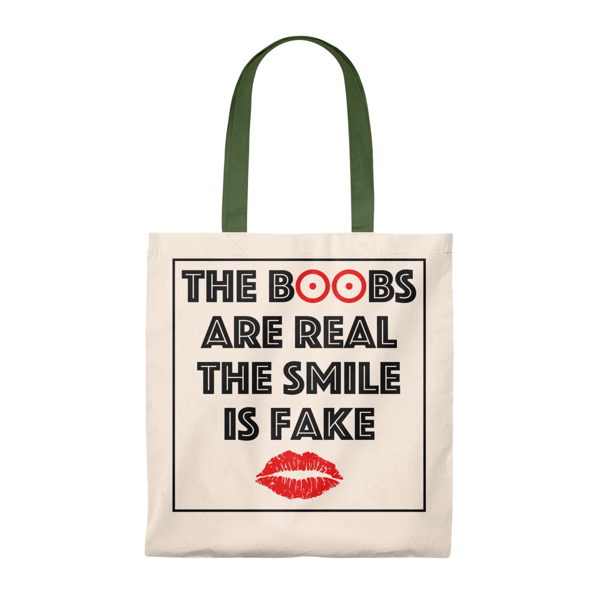 The Boobs Are Real The Smile Is Fake Vintage Canvas Tote Bag – Shoulder Bag – Reusable Grocery Shopping Bag