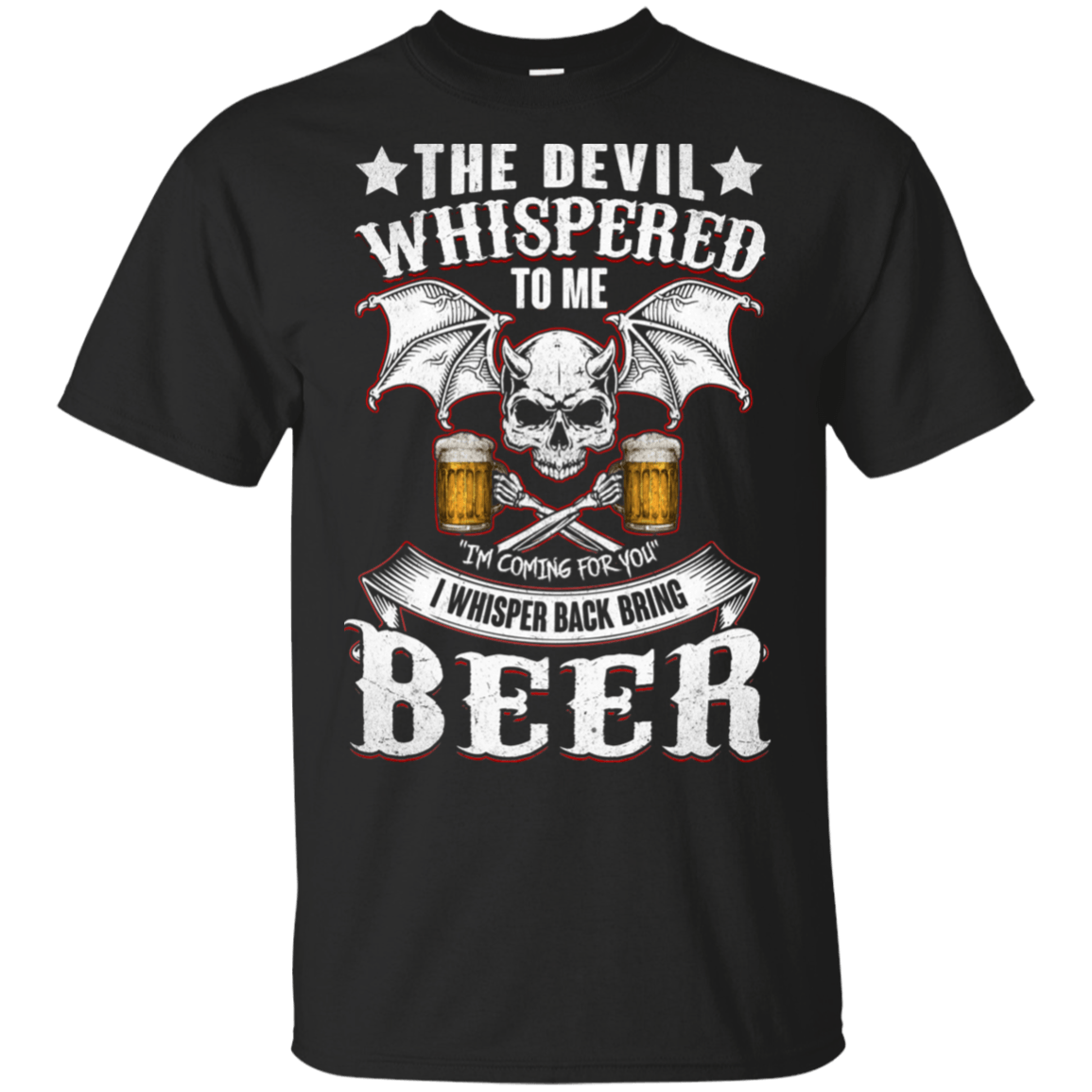 The Devil Whispered To Me Im Coming For You I Wishper Back Bring Beer T-Shirt