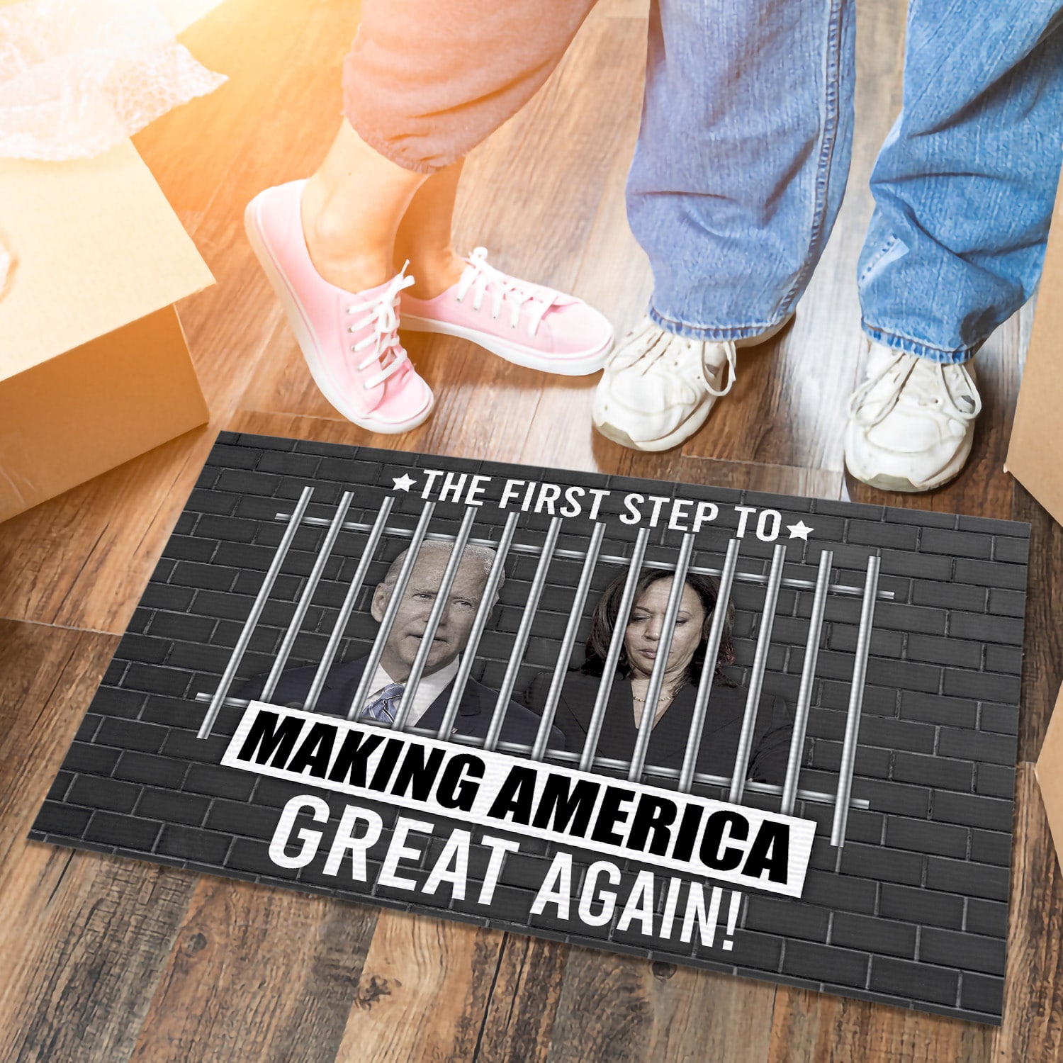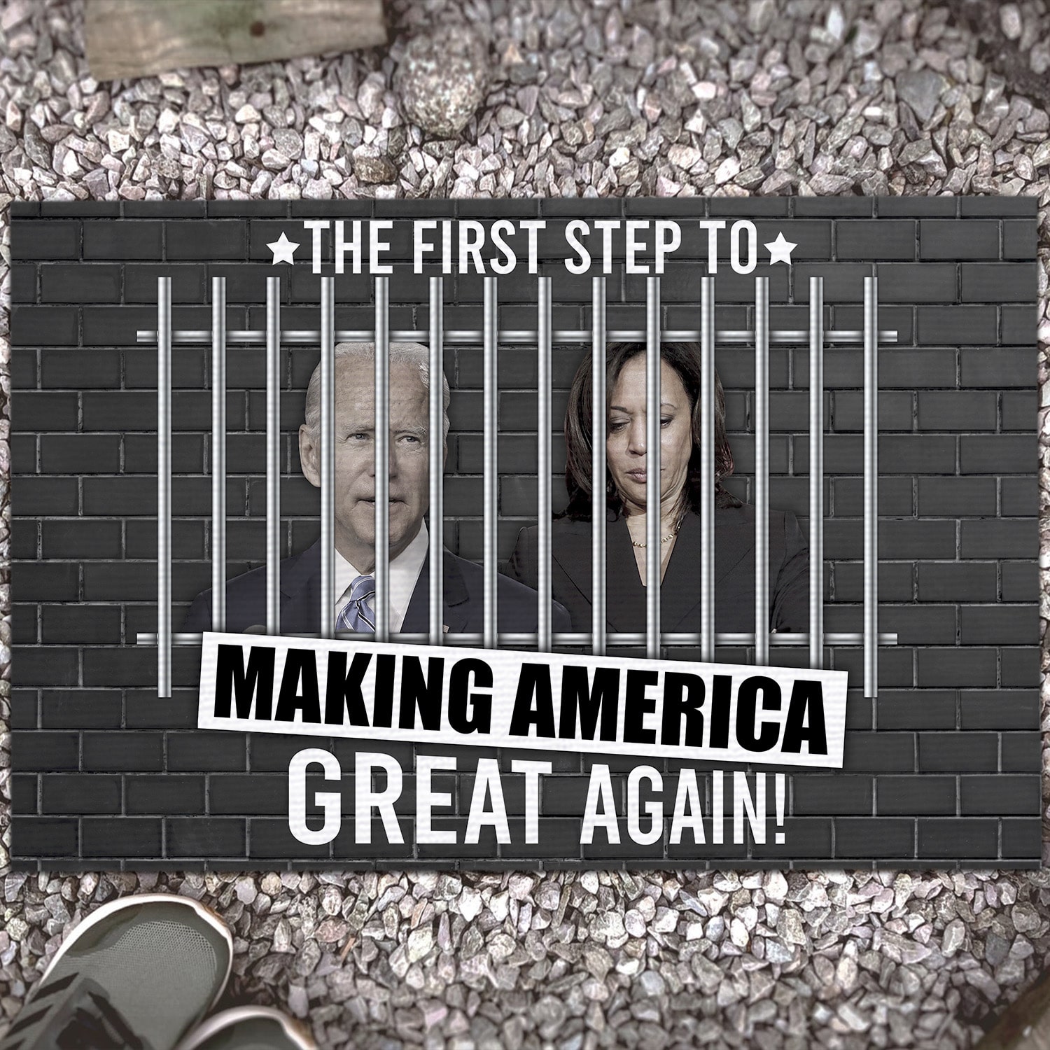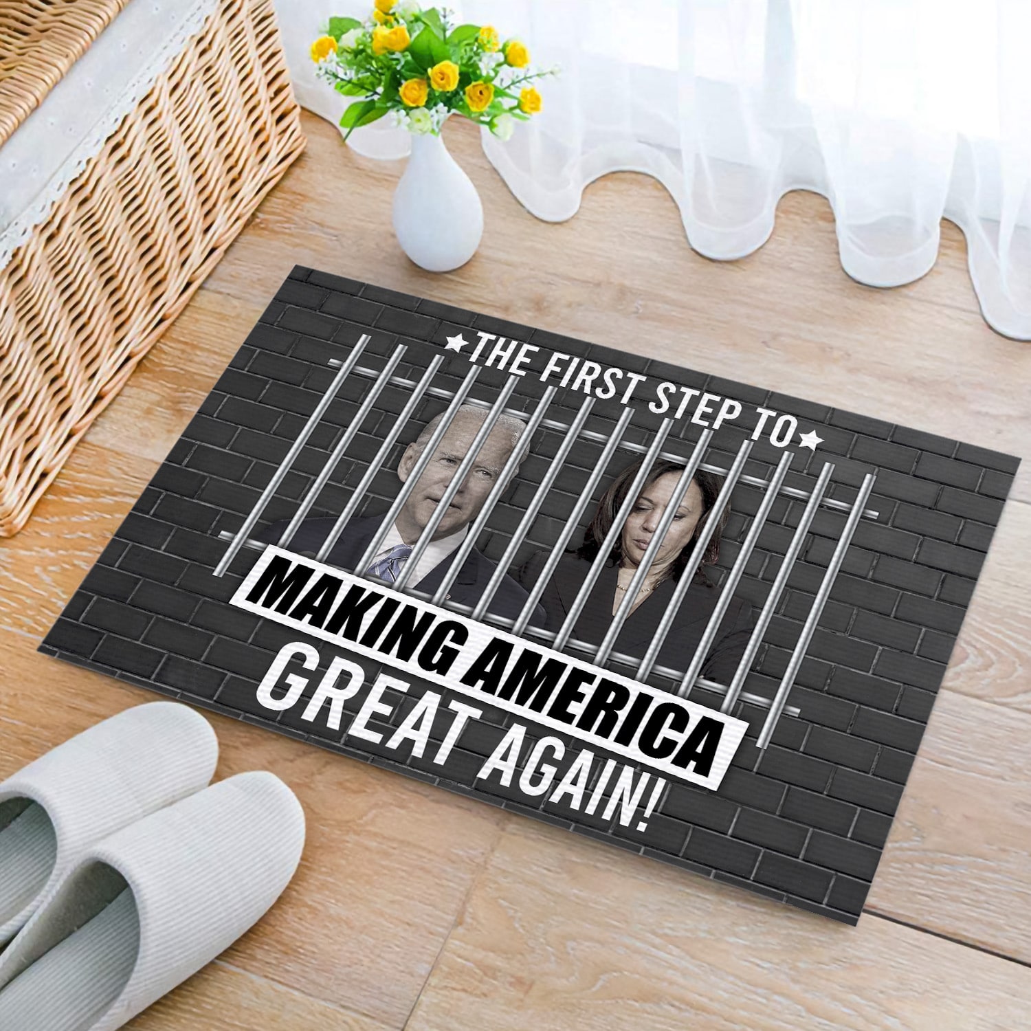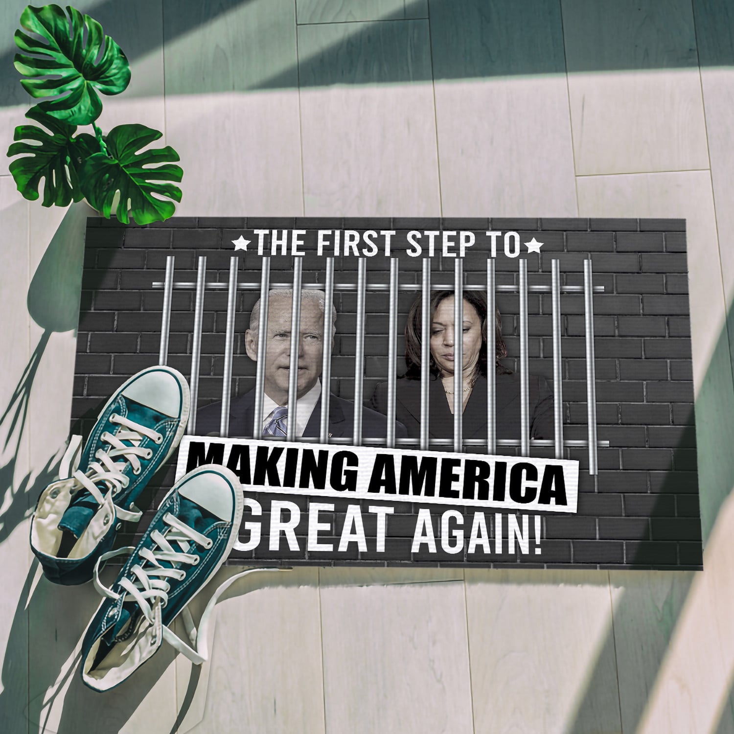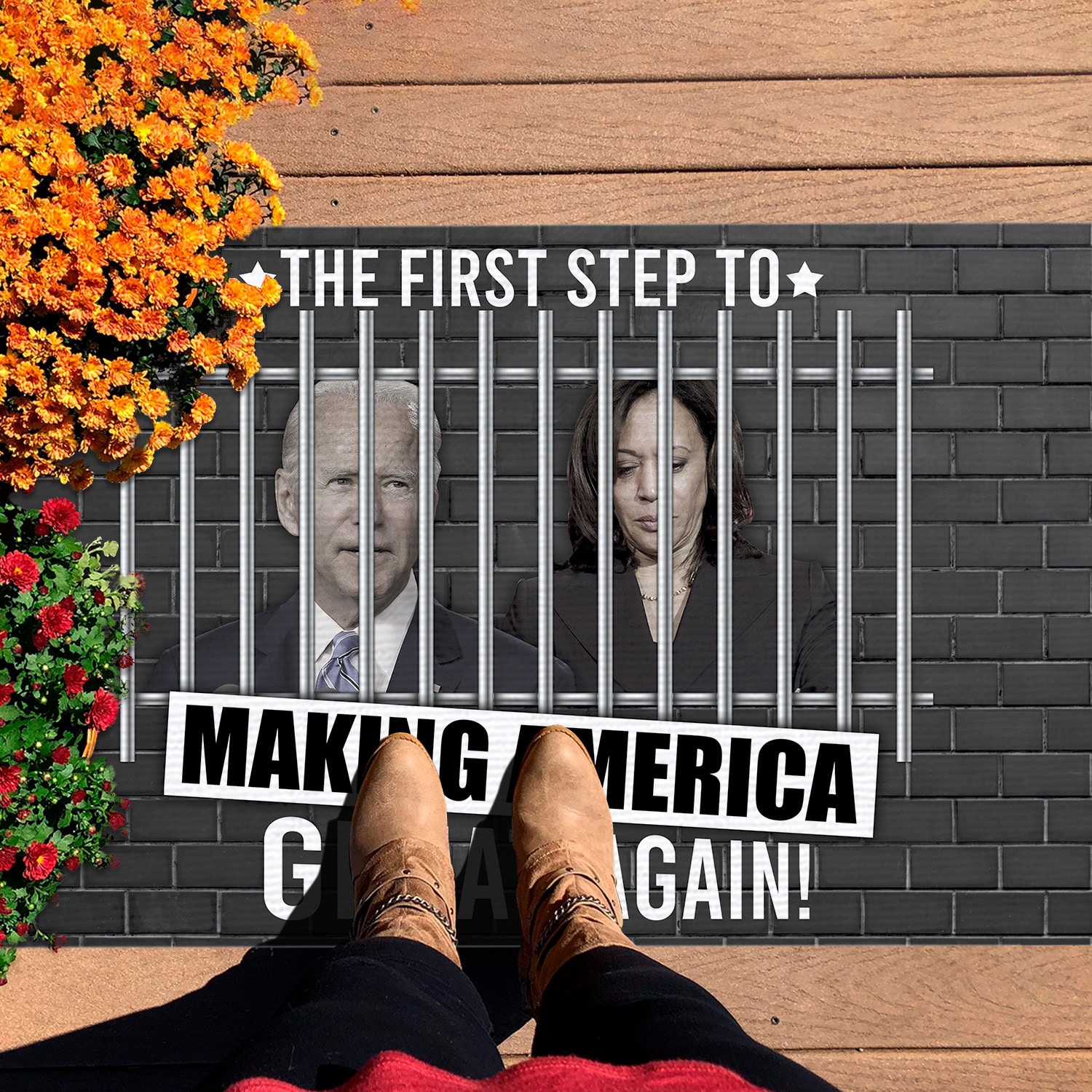 Let’s Shop The First Step to Making America Great Again Anti Biden Kamala Entrance Indoor Outdoor Decorative Doormat!